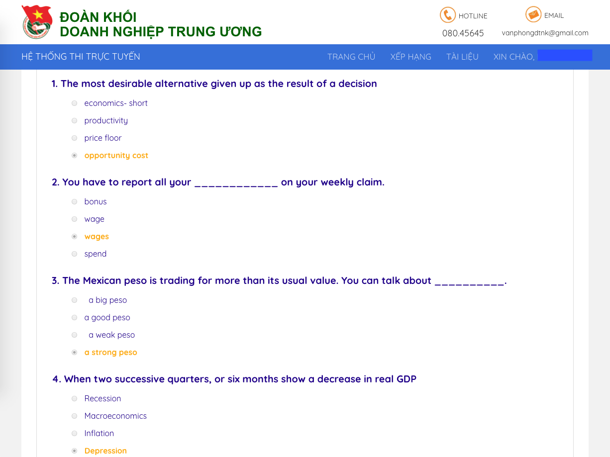 Ban Thường vụ Đoàn Khối đã phối hợp với Trường Đại học Ngoại ngữ, Đại học Quốc gia Hà Nội và Ban Quốc tế Trung ương Đoàn xây dựng ngân hàng đề gồm 450 câu hỏi trắc nghiệm bằng tiếng Anh xung quanh các lĩnh vực về kính trị, kinh tế - xã hội, văn hóa Việt Nam, các kiến thức cơ bản và nâng cao về kinh tế, quản trị kinh doanh, hội nhập quốc tế; công tác Đoàn và phong trào thanh niên. Trong mỗi bài thi phần mềm máy tính sẽ tự chọn ra 30 câu hỏi trong ngân hàng đề, hoán đổi vị trí các câu trả lời và thí sinh tham gia thi với thời gian 15 phút.
