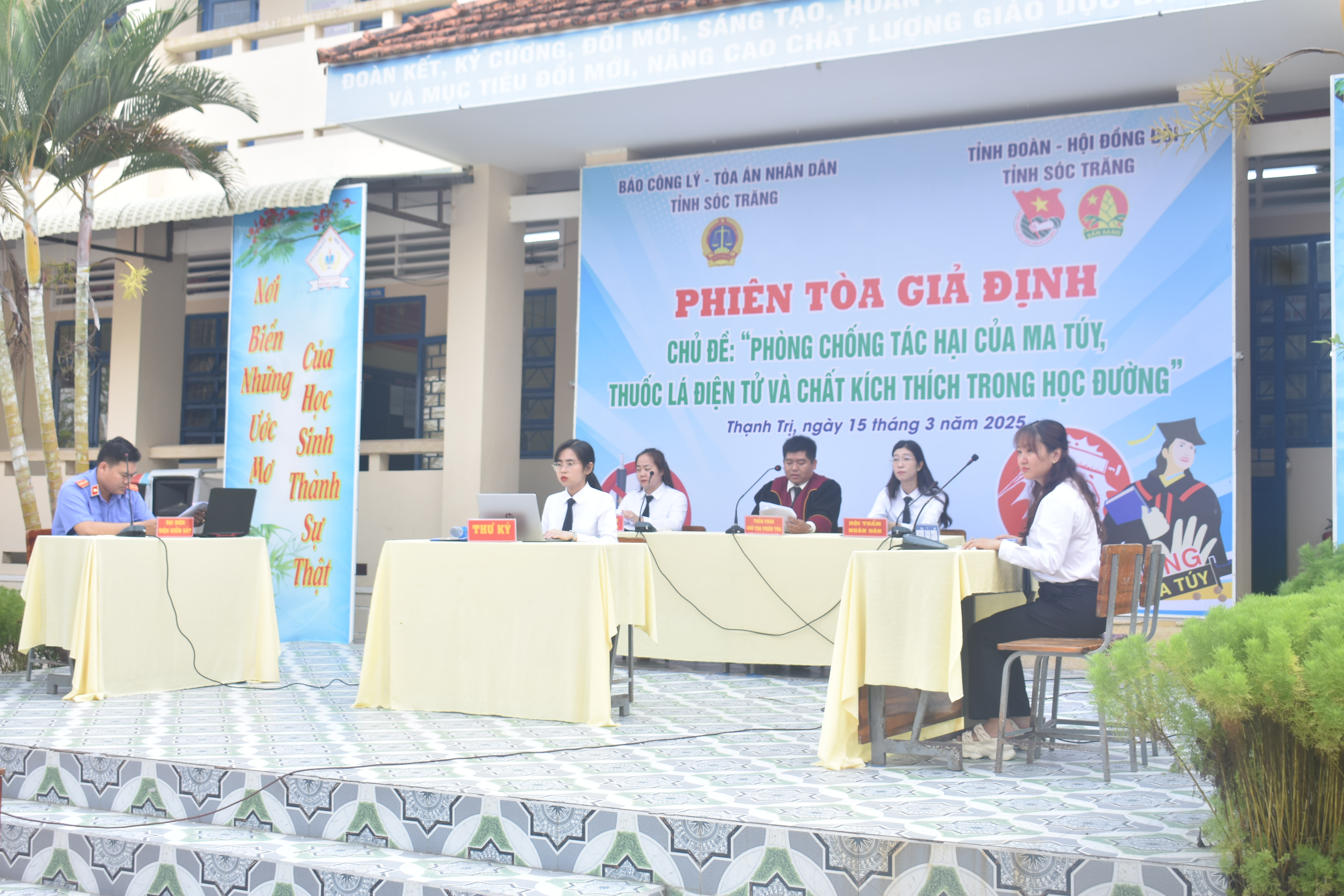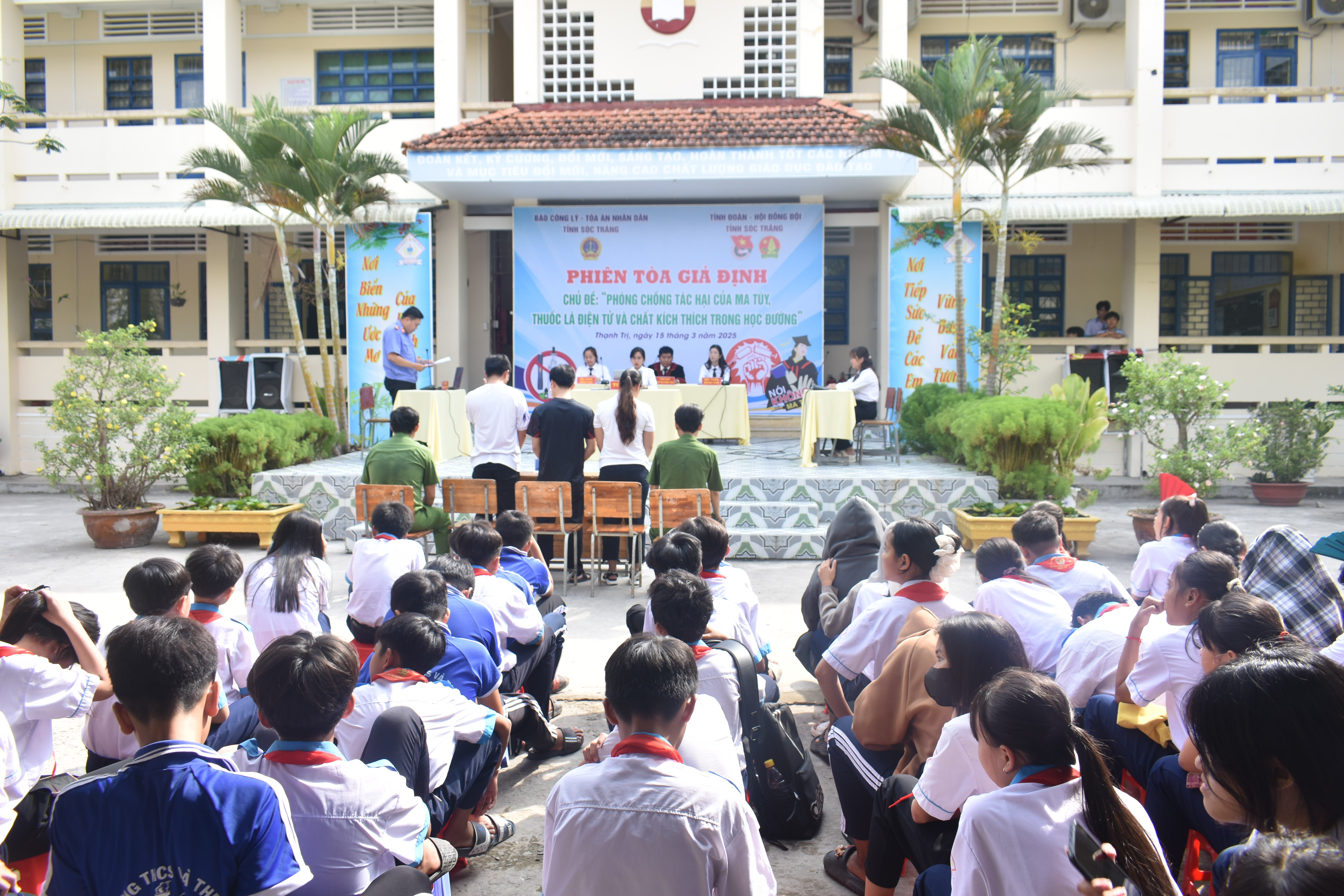 Sáng ngày 15/3/2025, tại Trường Trung học cơ sở - Trung học phổ thông (THCS-THPT) Hưng Lợi, huyện Thạnh Trị; Tỉnh đoàn Sóc Trăng phối hợp Tòa án nhân dân tỉnh, Báo Công lý tổ chức Phiên tòa giả định với chủ đề “Phòng chống tác hại của ma túy, thuốc lá điện tử và chất kích thích trong học đường” năm 2025.
