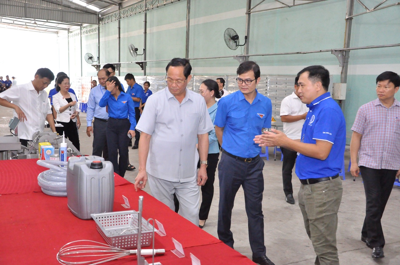 Tiếp đó Đoàn đã đến tham quan Công ty TNHH Sản xuất - Thương mại - Dịch vụ - Kỹ thuật Phúc Lộc, ngành nghề chủ lực của Công ty là sản xuất, kinh doanh máy móc, thiết bị, phụ tùng nông nghiệp, công nghiệp. Tại đây, các đồng chí lãnh đạo đã tham quan quy trình sản xuất của Công ty, đồng thời được nghe đại diện Công ty sơ nét về lịch sử hình thành, báo cáo tình hình sản xuất kinh doanh trong thời gian qua cũng như những khó khăn, vướng mắc mà Công ty đang gặp phải trong giai đoạn hiện nay.