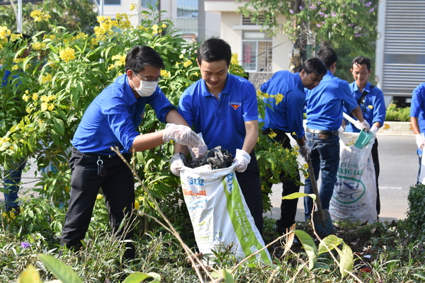 Đoàn viên thanh niên tham gia hưởng ứng Chiến dịch "Hãy làm sạch biển", tại huyện Trần Đề