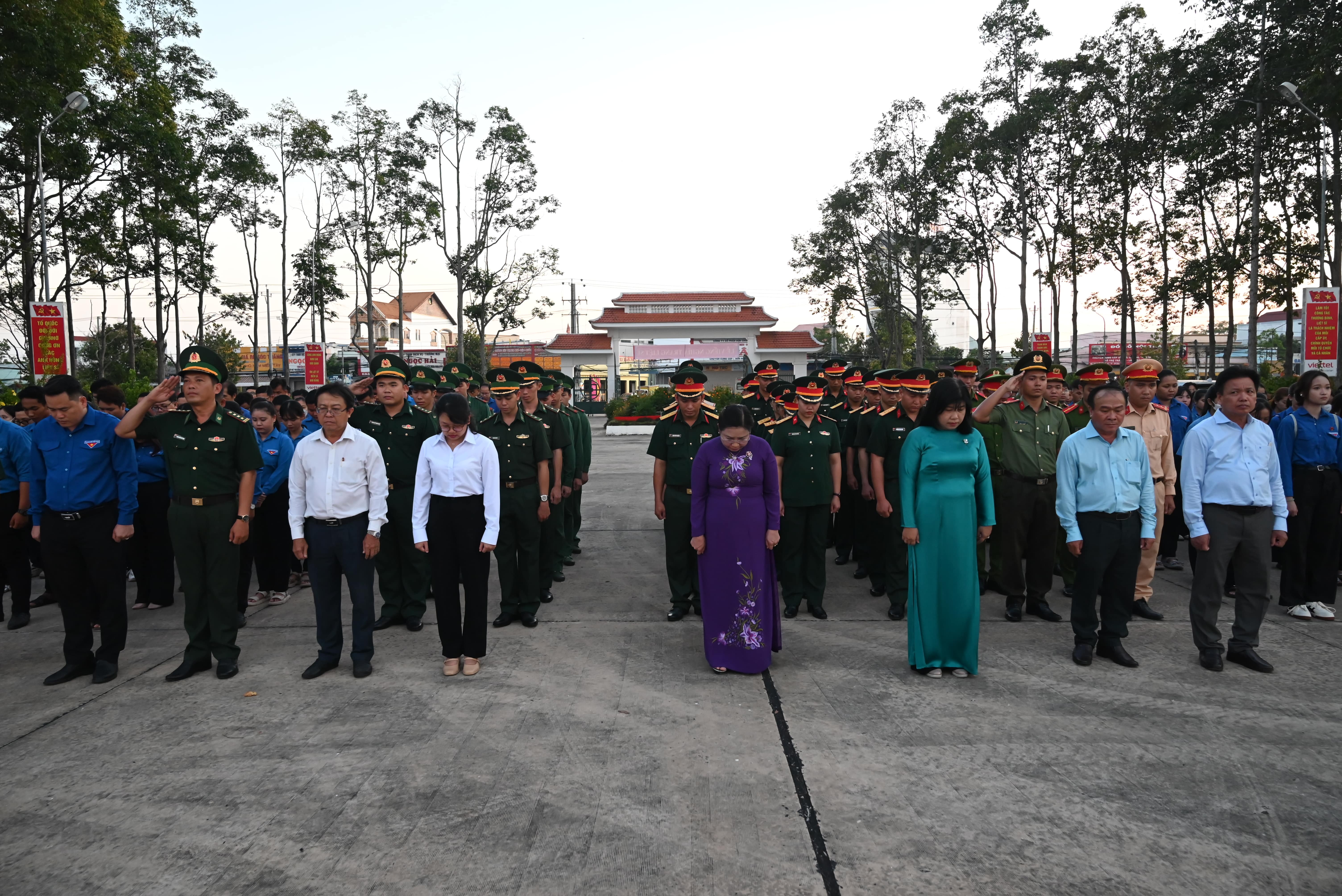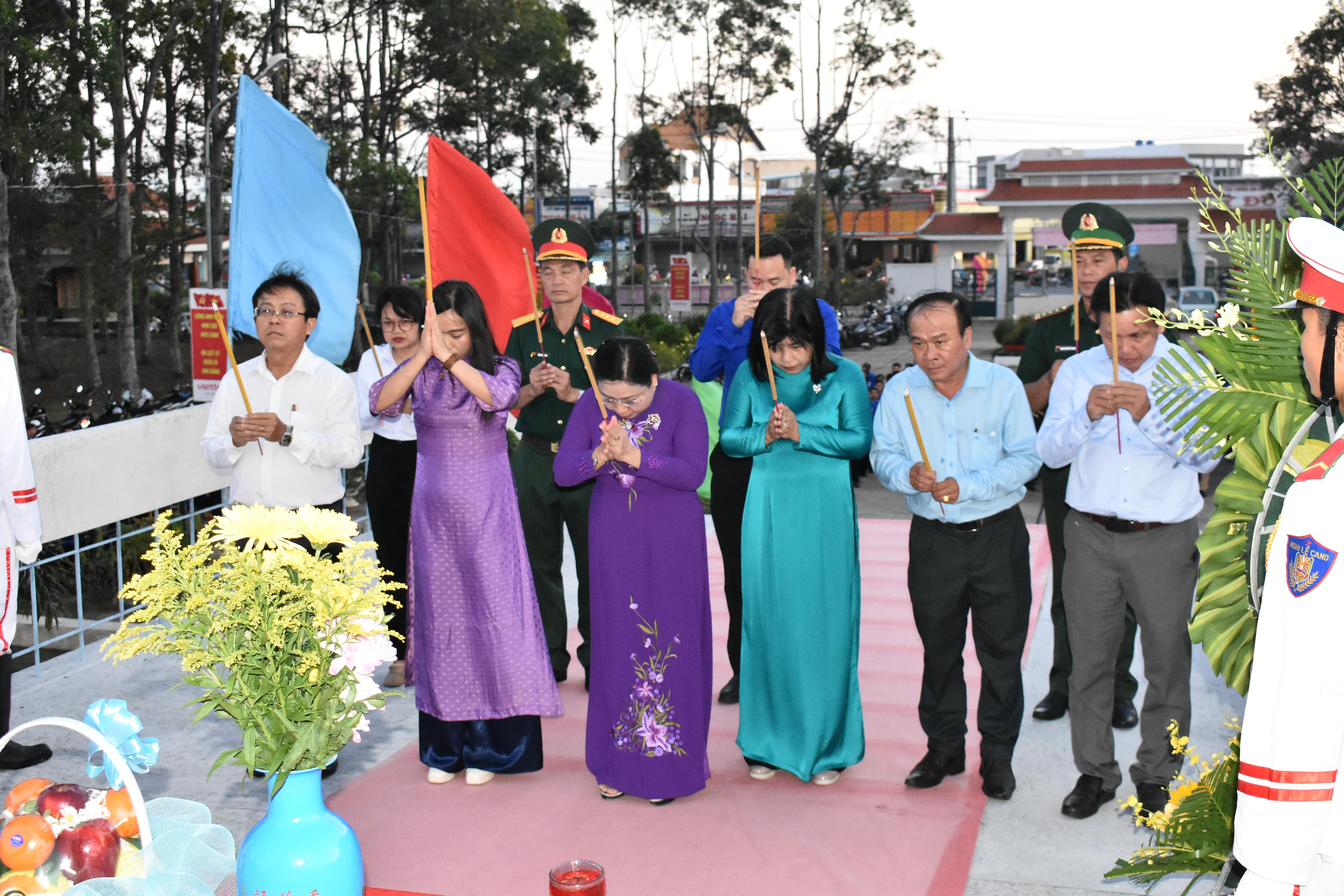 Tại buổi Lễ, các đại biểu đã dành một phút mặc niệm bày tỏ lòng biết ơn sâu sắc với công lao của các anh hùng liệt sĩ và Chủ tịch Hồ Chí Minh dâng hoa, dâng hương tại đài tưởng niệm và thắp nến, thắp hương tại các phần mộ liệt sĩ tại nghĩa trang.