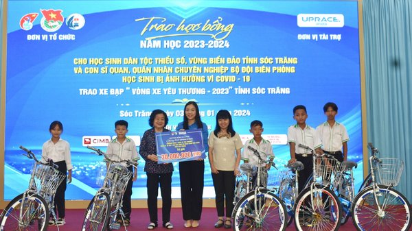 Dịp này, nhằm hỗ trợ cho các em học sinh có hoàn cảnh khó khăn ở vùng sâu, vùng xa trên địa bàn tỉnh có phương tiện đến trường, Báo Thiếu niên Tiền phong và Nhi đồng - Trung ương Đoàn TNCS Hồ Chí Minh cũng dành tặng 15 xe đạp, mỗi chiếc trị giá 02 triệu đồng cho học sinh có hoàn cảnh khó khăn.