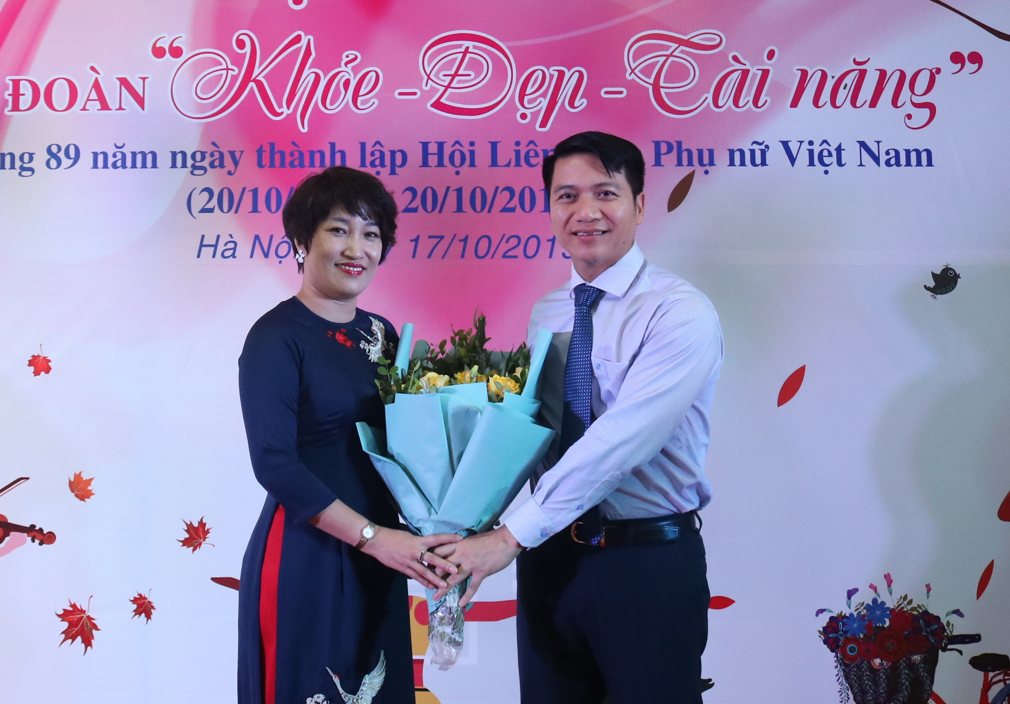 Đồng chí Nguyễn Ngọc Lương - Bí thư Trung ương Đoàn, Chủ tịch Hội đồng Đội Trung ương tặng hoa chúc mừng toàn thể chị em cán bộ, công chức, viên chức cơ quan TƯ Đoàn nhân dịp 20-10
