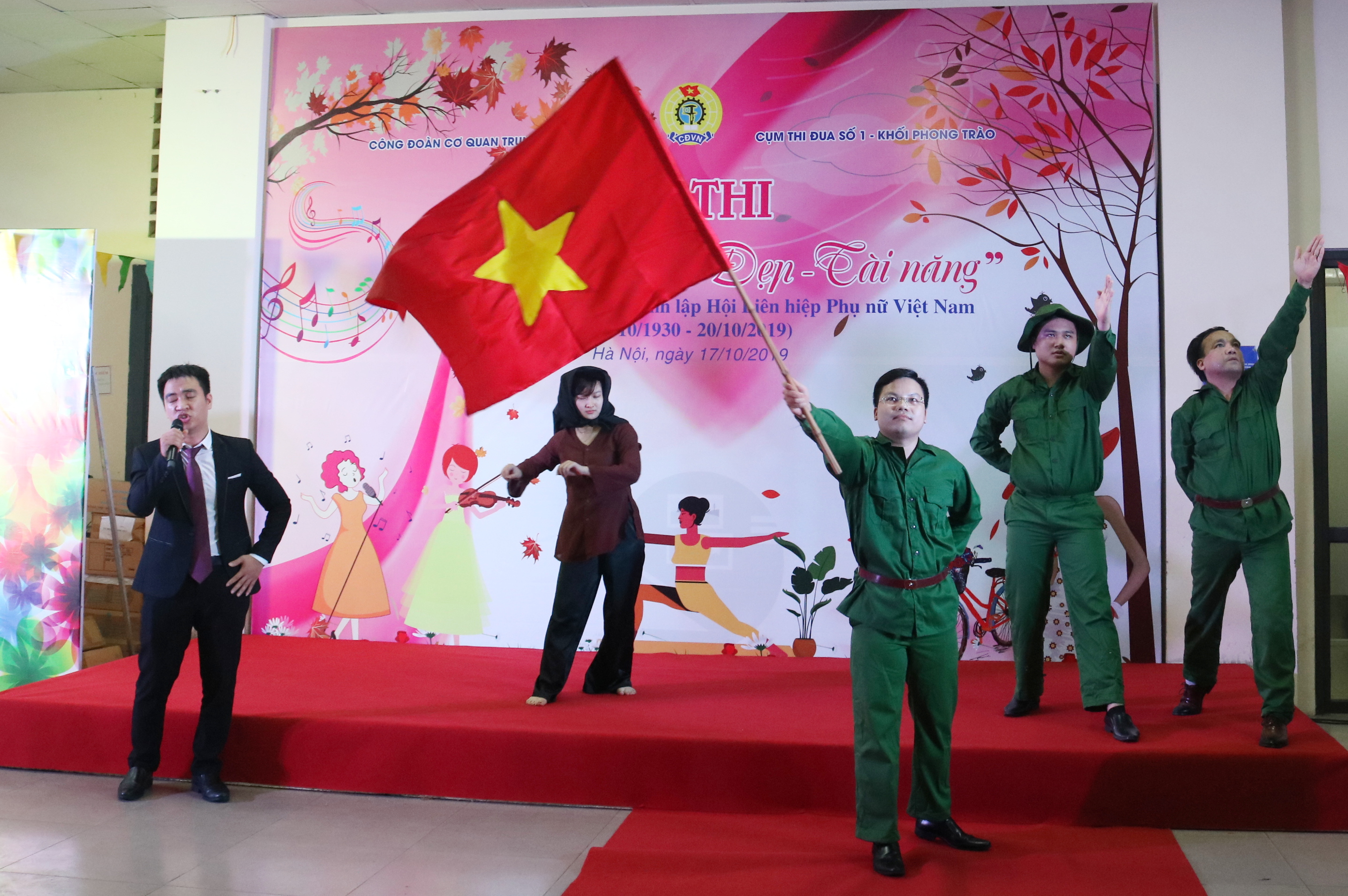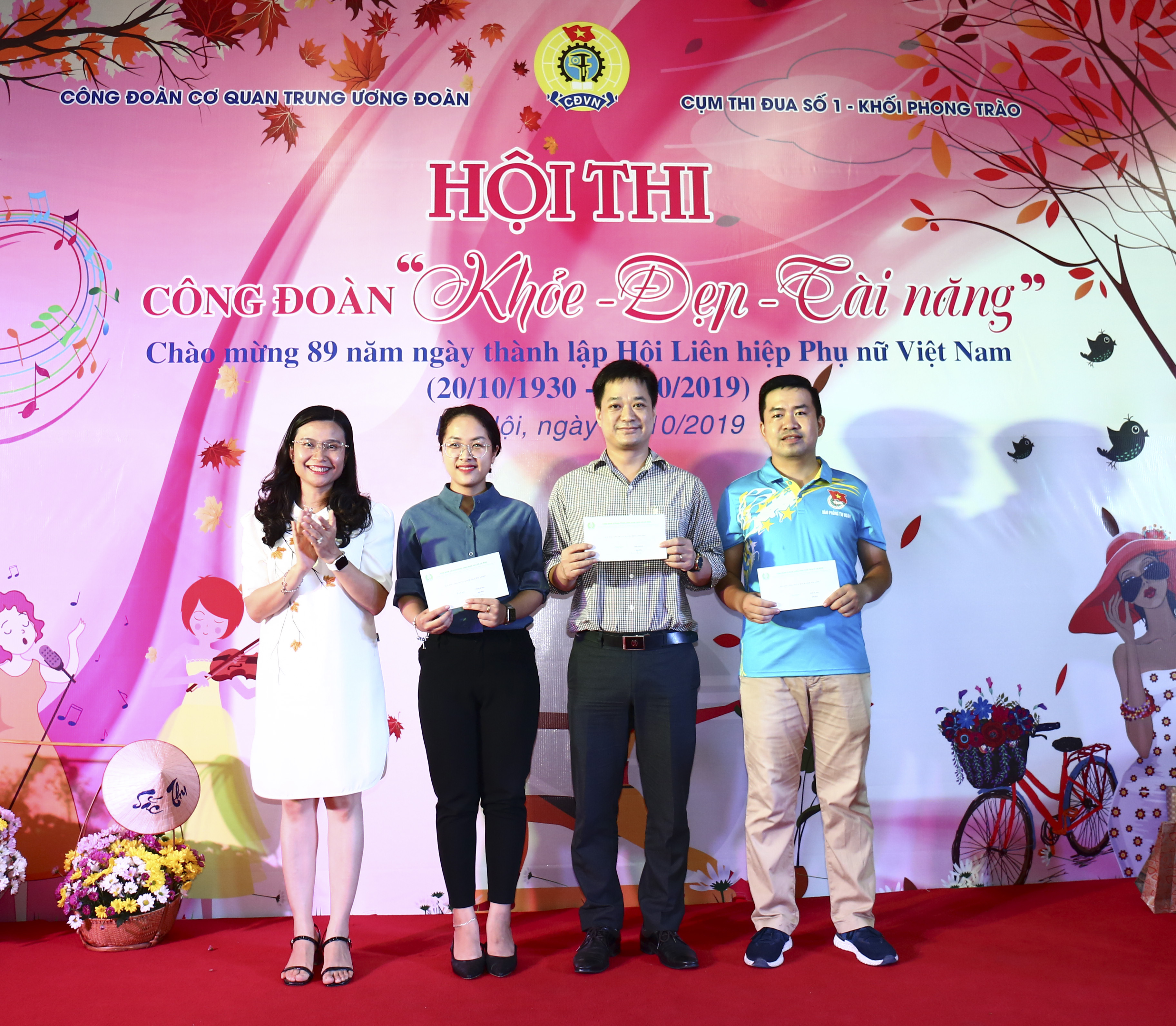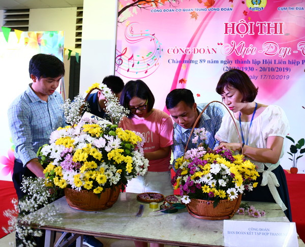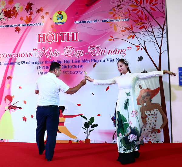 Hội thi công đoàn "Khỏe - Đẹp - Tài năng" diễn ra với 3 phần thi sôi nổi và hấp dẫn với nhiều nội dung như: trình diễn trang phục công sở và trang phục cán bộ Đoàn; hát, múa, ngâm thơ, vẽ tranh, cắm hoa; nhảy bao bố, bắc cầu qua sông và cõng về đích...