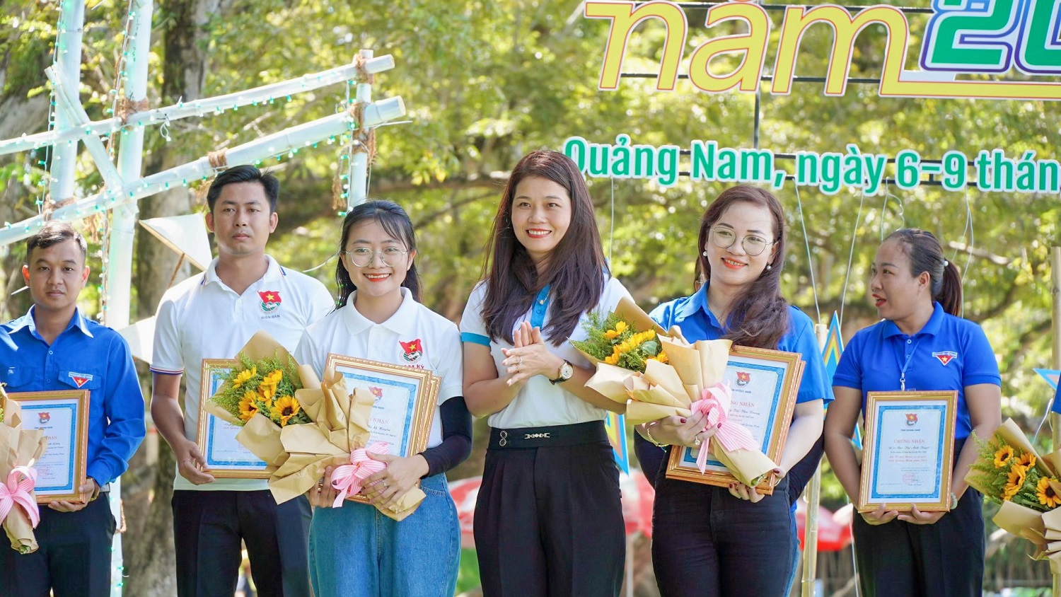 Bí thư Tỉnh đoàn Phạm Thị Thanh trao giải nhất, nhì toàn đoàn cho đơn vị Điện Bàn và Nông Sơn.