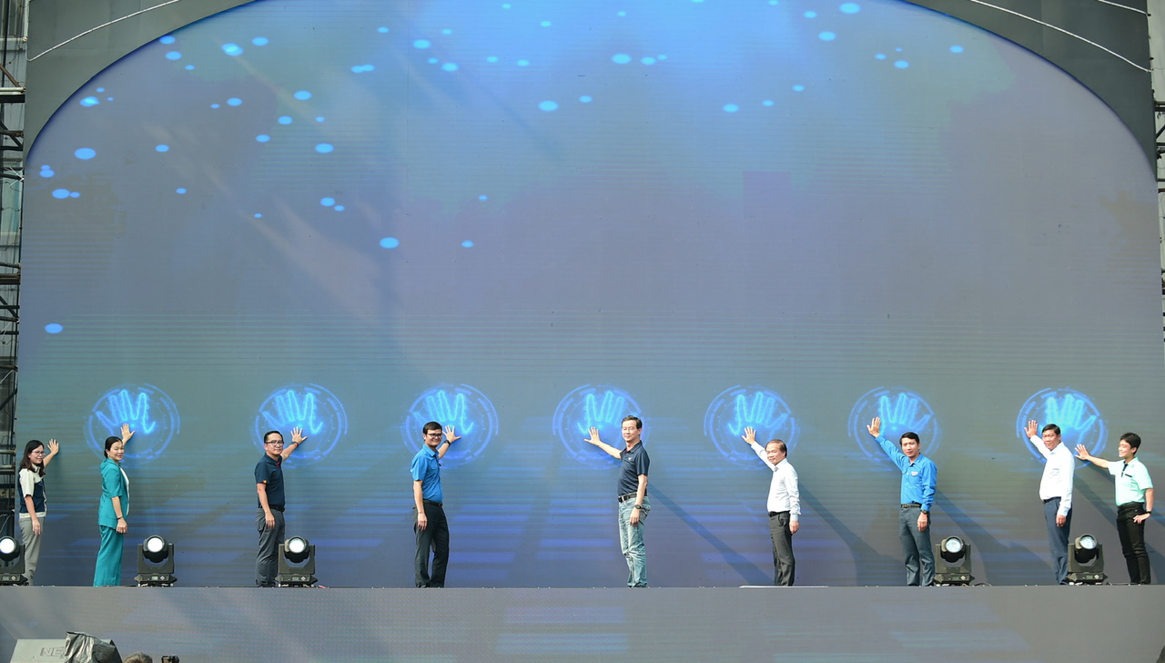 Các đại biểu thực hiện nghi thức khởi động Ngày hội