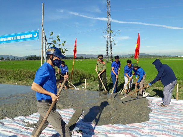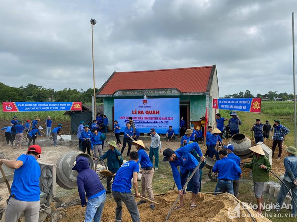 Ngay trong buổi sáng, hàng trăm đoàn viên, thanh niên đã tham gia các hoạt động như: xây dựng tuyến đường cờ kiểu mẫu tại xóm An Phú, đổ 220 m2 sân bê tông Nhà Văn hóa xóm Nho Hạp, xã Nghĩa An. Đây là xóm đặc biệt khó khăn với gần 90% đồng bào dân tộc thiểu số.