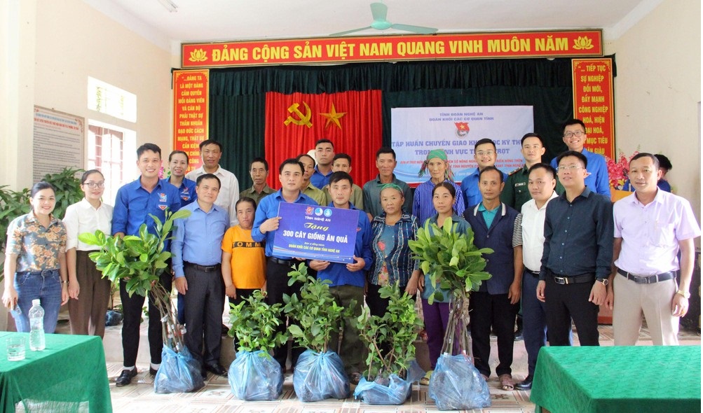 Kết thúc buổi tập huấn, đoàn thanh niên của Sở Nông nghiệp và Phát triển nông thôn đã trao tặng 300 giống cây ăn quả gồm ổi, xoài, mít để bà con xóa vườn tạp, cải tạo diện tích đồi để phát triển các giống cây trồng có chất lượng cao.