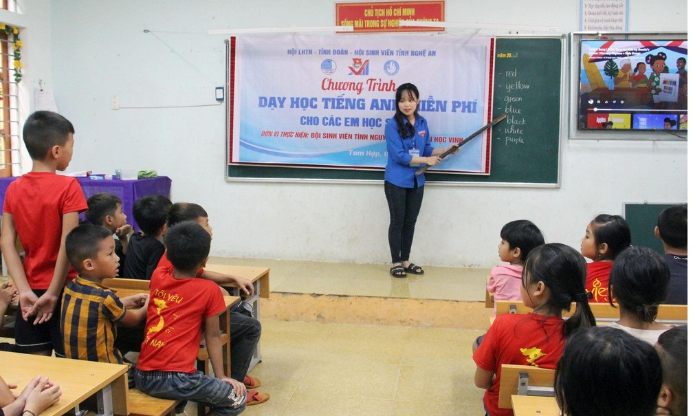 Đội hình thanh niên tình nguyện của đoàn Trường Đại học Vinh tổ chức dạy văn hóa hè, dạy tiếng Anh cho học sinh tại Trường Tiểu học Tam Hợp đứng chân trên địa bàn bản Xốp Nặm (xã Tam Hợp, huyện Tương Dương).
