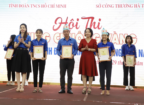 Trao giải Nhì cho các thí sinh Phan Thị Mơ (ĐV Đoàn Khối các CQ&DN tỉnh), thí sinh Nguyễn Mạnh Hùng và Nguyễn Thị Vân (ĐV Huyện đoàn Thạch Hà)