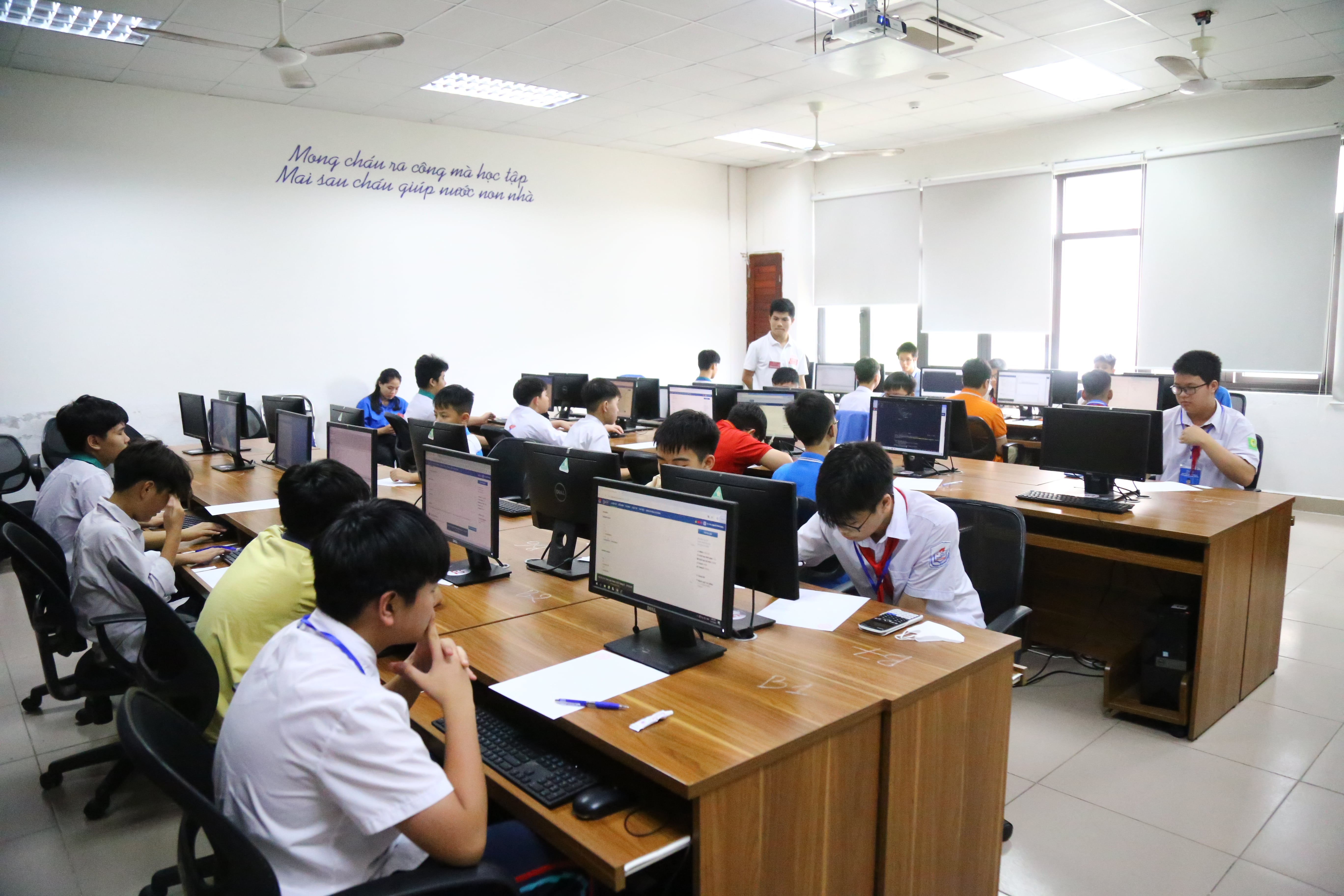Các thí sinh tham gia thi trực tuyến trên hệ thống thi của Trung ương Đoàn, bảo đảm tính minh bạch, công bằng và thuận tiện trong tổ chức, đồng thời tạo điều kiện để học sinh làm quen với môi trường số hiện đại.