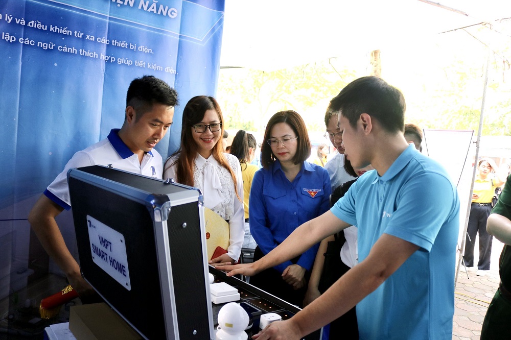 Bí thư Đoàn Khối Doanh nghiệp T.Ư Hoàng Thị Minh Thu tham quan gian hàng của Đoàn thanh niên VNPT