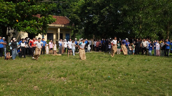 Các đội tham gia thi nhảy bao bố tiếp sức nam, nữ.