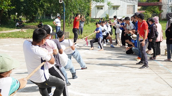 Các đội tham gia thi kéo co nam, nữ phối hợp.