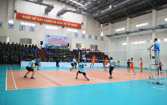 Các vận động viên Bộ Tư lệnh Cảnh vệ và Bộ Tư lệnh Bảo vệ Lăng Chủ tịch Hồ Chí Minh so tài bóng chuyền. Bên cạnh chương trình giao lưu, các đơn vị đã thành lập các đội thi đấu bóng chuyền vào sáng 22/3; tranh tài nội dung nhảy bao bố, trò chơi vận động và chương trình “Rung chuông vàng” vào chiều 22/3.