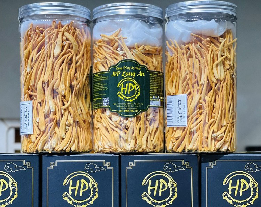 Một trong những mẫu sản phẩm đông trùng hạ thảo khô sấy thăng hoa của Công ty Cổ phần Đông trùng hạ thảo HP Long An