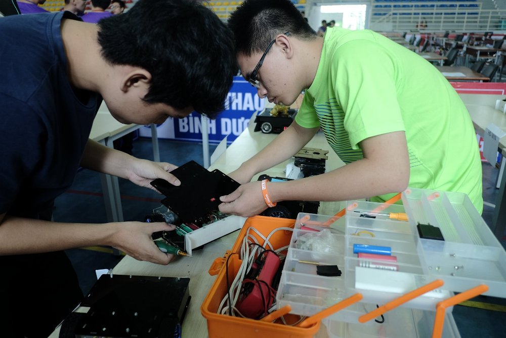 Các thí sinh lắp ráp sản phẩm trước giờ thi đấu