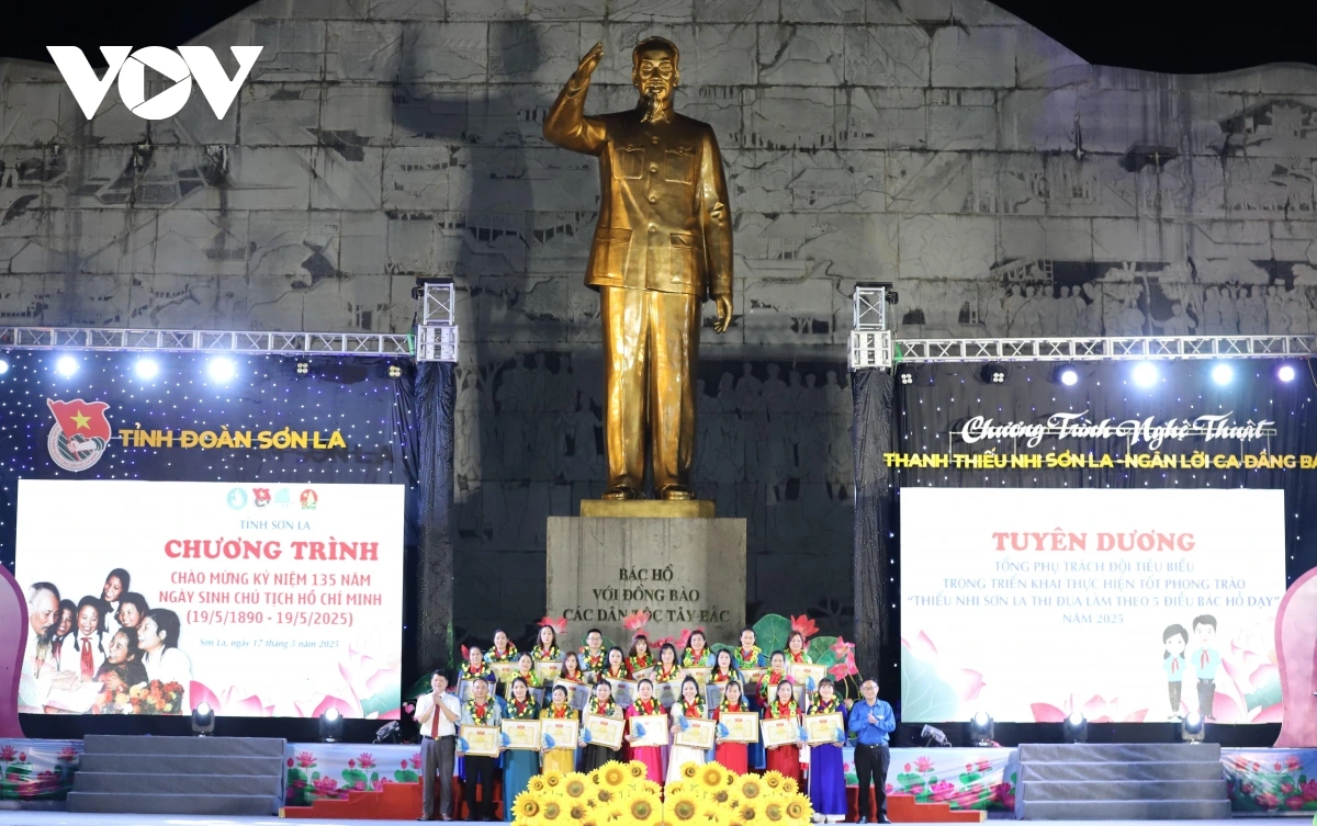 Tại không gian thiêng liêng bên Tượng đài Chủ tịch Hồ Chí Minh và đồng bào các dân tộc Tây Bắc, tỉnh Sơn La đã long trọng tổ chức lễ tuyên dương 60 thanh niên tiên tiến làm theo lời Bác và 75 cá nhân là đội viên, tổng phụ trách Đội tiêu biểu trong phong trào “Thiếu nhi Sơn La thi đua làm theo 5 điều Bác Hồ dạy” năm 2025.