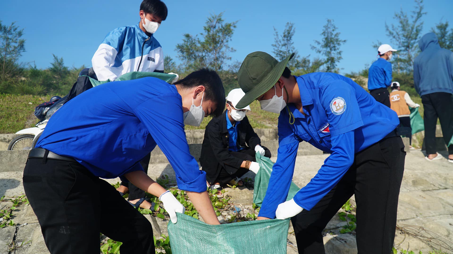 Các bạn đoàn viên, thanh niên đã tích cực tham gia dọn vệ sinh bãi biển Tân An