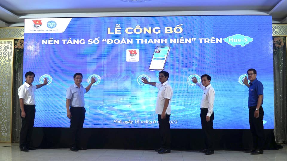 Các đại biểu thực hiện nghi thức ra mắt nền tảng số “Đoàn Thanh niên” trên Hue-S