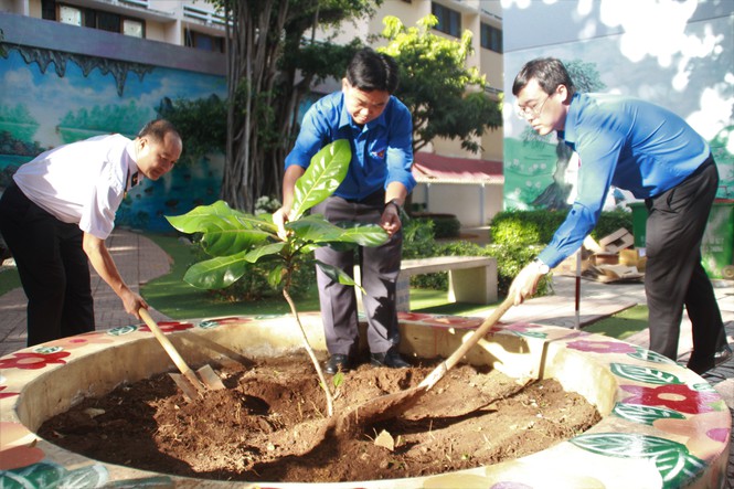 Đoàn công tác trồng cây lưu niệm tại trường