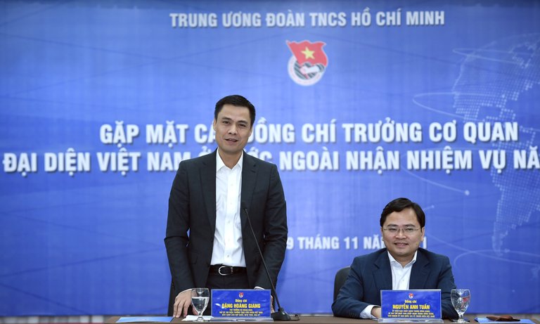 Chúng tôi cho rằng, mỗi thanh niên có thể làm đại sứ Việt Nam ở nước ngoài; kỳ vọng thanh niên đóng góp nhiều hơn cho đất nước. Bộ Ngoại giao sẵn sàng hỗ trợ để thúc đẩy sự tham gia của thanh niên vào công tác đối ngoại và hợp tác với T.Ư Đoàn để thúc đẩy công tác thanh niên Việt Nam ở nước ngoài", đồng chí Đặng Hoàng Giang khẳng định./: