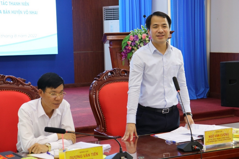 Bí thư Huyện ủy Võ Nhai phát biểu tại buổi làm việc với đoàn giám sát của T.Ư Đoàn