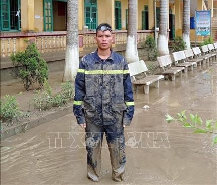 Nhận được tin, dù đang nghỉ phép về thăm gia đình nhưng chiến sĩ Quan Ngọc Hoàng đã không ngại trời mưa to, đêm tối, đường sạt lở, khẩn trương đến hiện trường để thực hiện công tác cứu nạn.