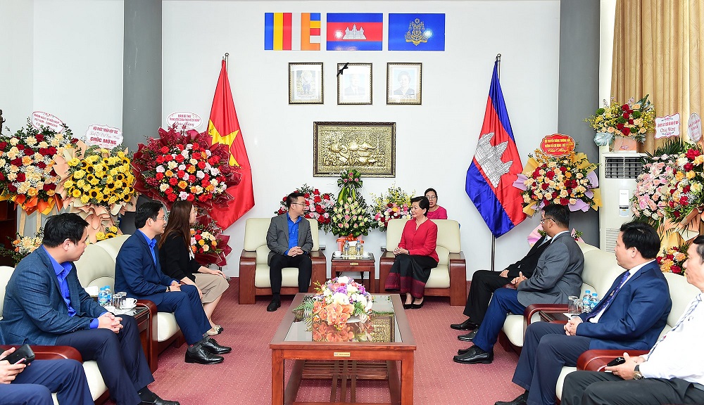 Đại sứ đặc mệnh toàn quyền Vương quốc Campuchia tại Việt Nam vui mừng đón tiếp đoàn đại biểu Trung ương Đoàn TNCS Hồ Chí Minh đến chúc Tết Đại sứ quán, đồng thời cảm ơn Đoàn TNCS Hồ Chí Minh và các tổ chức thanh niên Việt Nam đã tổ chức nhiều hoạt động chúc Tết tới các bạn du học sinh Campuchia tại Việt Nam.