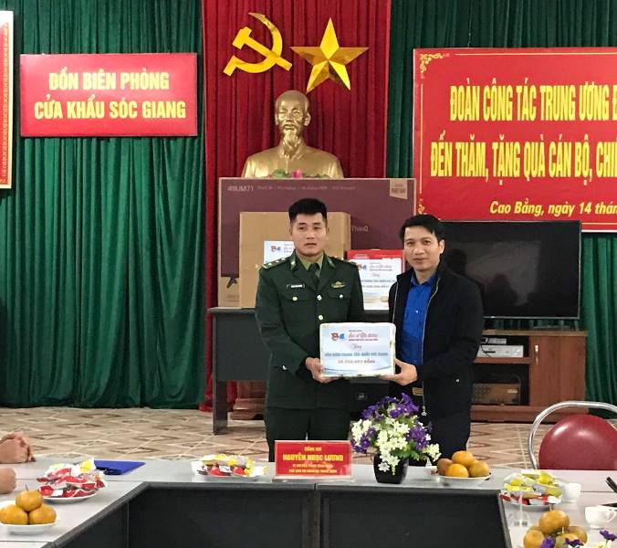 Đồng chí Nguyễn Ngọc Lương – Bí thư Trung ương Đoàn, Chủ tịch Hội đồng Đội Trung ương tặng quà, động viên lực lượng bộ đội biên phòng đồn biên phòng cửa khẩu Sóc Giang