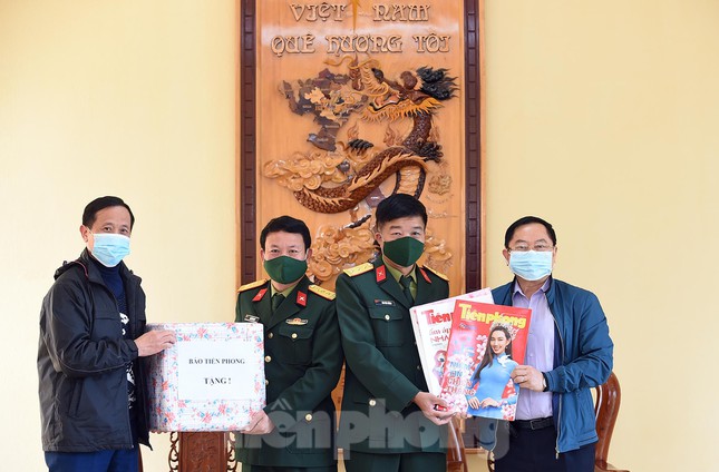 Nhà báo Lê Xuân Sơn - Tổng Biên tập Báo Tiền Phong, Chủ tịch Hội Cựu chiến binh cơ quan T.Ư Đoàn tặng quà, ấn phẩm Tết tới Trung đoàn 88. Ảnh: Xuân Tùng