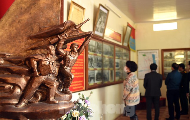 Đoàn đại biểu đã tham quan phòng truyền thống của Trung đoàn 88. Trong ảnh là bản thu nhỏ Tượng đài Chiến thắng Tu Vũ (so với tượng đài thuộc Di tích lịch sử văn hóa cấp quốc gia địa điểm chiến thắng Tu Vũ tọa lạc tại huyện Thanh Thủy, Phú Thọ). Ảnh: Xuân Tùng