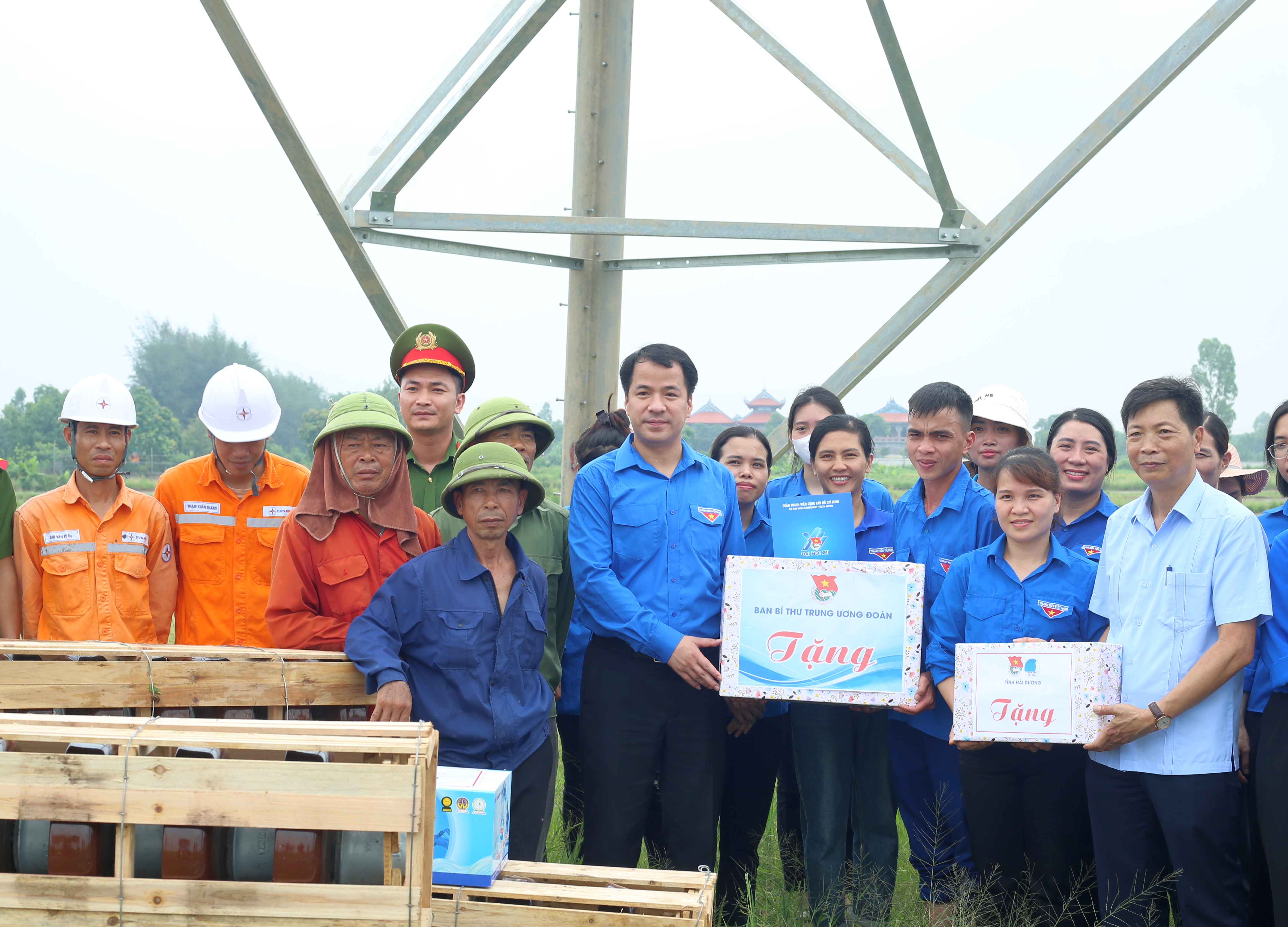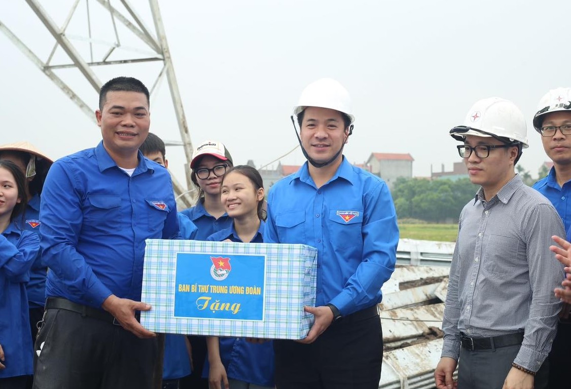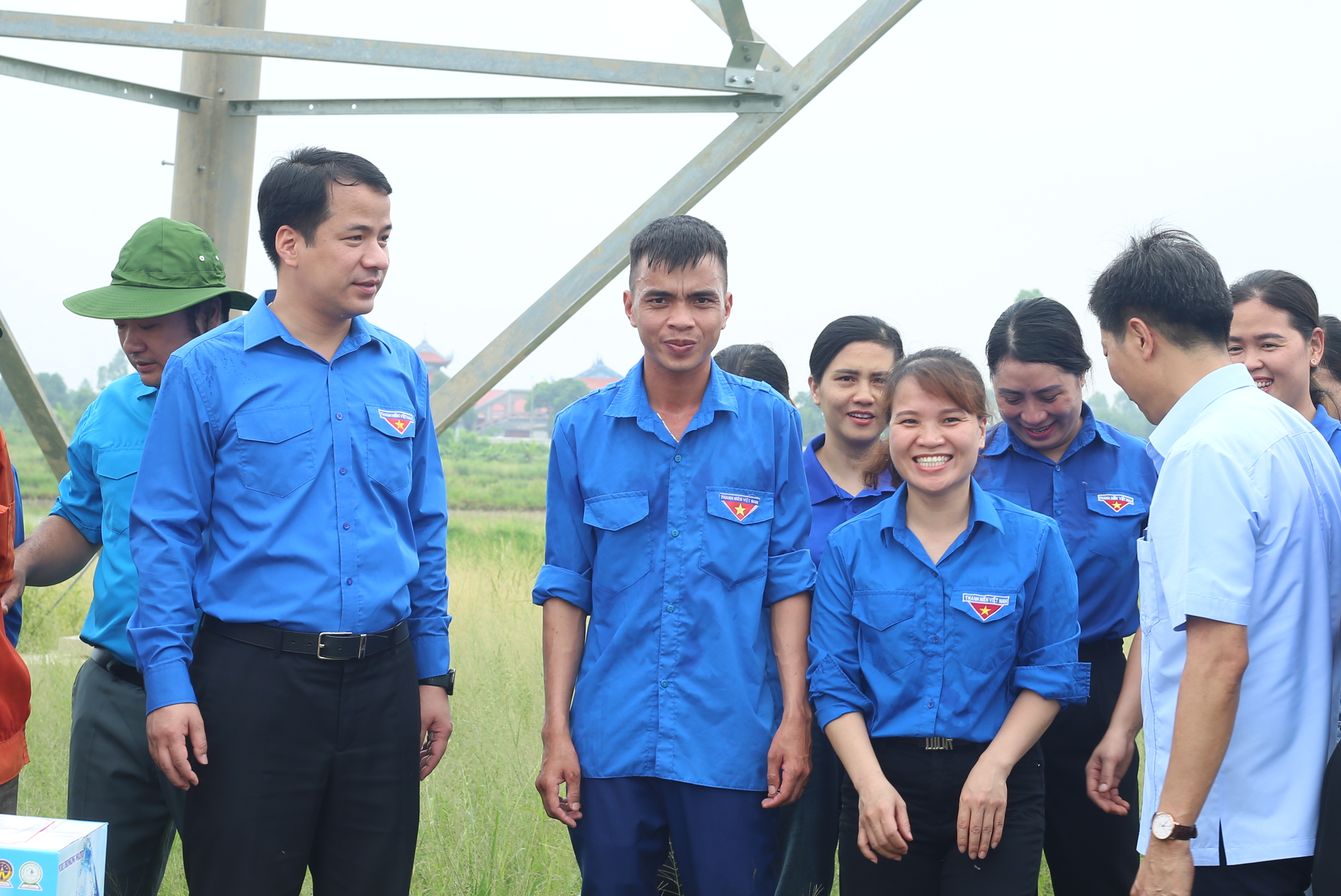 Trước đó, đoàn công tác đã kiểm tra công việc và thăm các đội hình thanh niên tình nguyện (TNTN), thanh niên công nhân thi công đường dây 500kV mạch 3 tại xã Hoà Phong, thị xã Mỹ Hào, tình Hưng Yên.