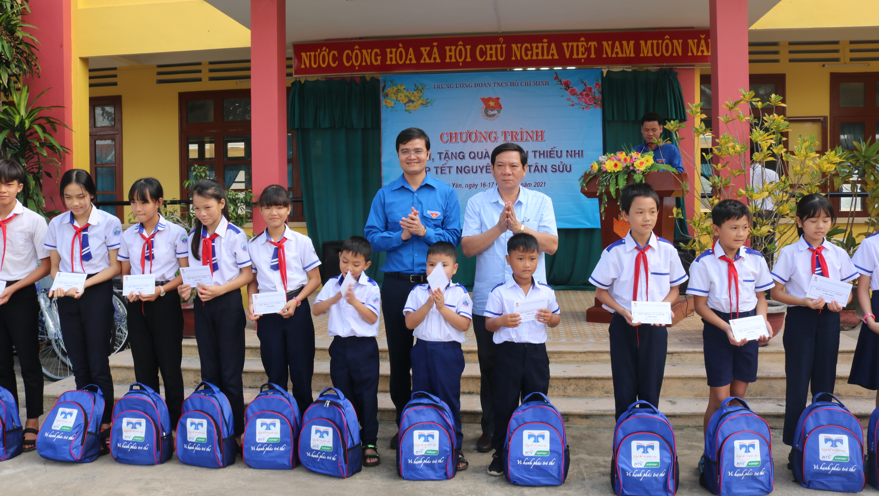 Tại đây, đoàn đã trao tặng 20 chiếc xe đạp, 30 suất học bổng Vừ A Dính (trị giá 1 triệu đồng/suất và quà), 20 suất học bổng cho học sinh THPT (trị giá 2 triệu đồng/suất và quà), 200 suất quà cho học sinh vượt khó, đạt thành tích học tập tốt trong năm học (gồm balô, vở, bút chì, bút màu, thước kẻ, tẩy, hộp bút và quà trị giá 400 nghìn đồng) cho các em học sinh, thiếu nhi ở các Trường Tiểu học An Hiệp, Tiểu học An Định, Tiểu học - THCS Lê Duẩn (huyện Tuy An), Trường Tiểu học và THCS Trần Nhân Tông (thị xã Đông Hòa).