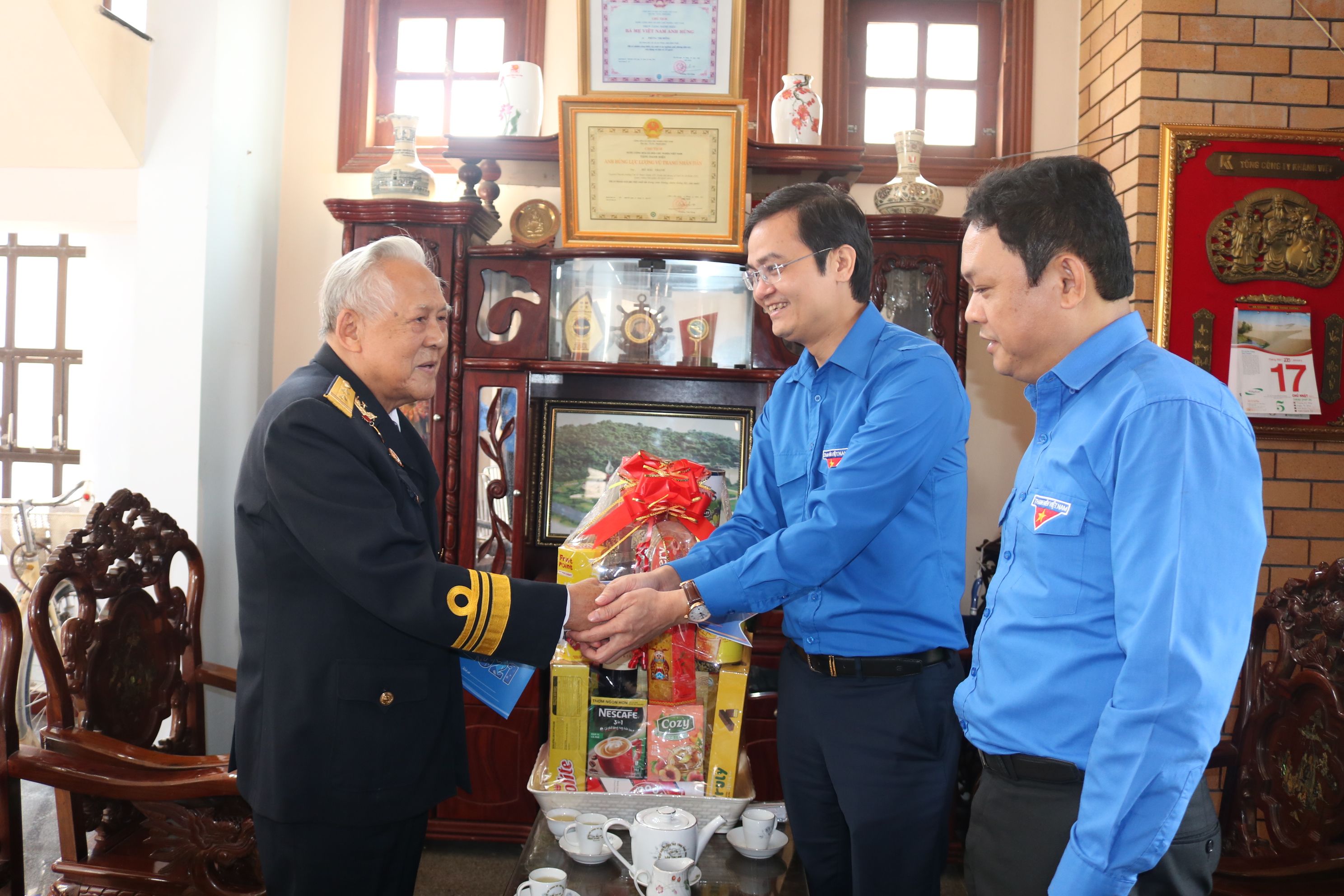 Dịp này, đoàn công tác Trung ương Đoàn đã tới thăm và tặng quà gia đình đồng chí Hồ Đắc Thạnh (nguyên Thuyền trưởng Tàu 41), Anh hùng Lực lượng vũ trang nhân dân. Trong kháng chiến chống Mỹ, ông Hồ Đắc Thạnh là thuyền trưởng Tàu không số, đã đưa 03 chuyến Tàu không số cập bến Vũng Rô thành công, đưa vũ khí và lương thực, thuốc chữa bệnh về các tỉnh Phú Yên, Khánh Hòa và Đắk Lắk. Thay mặt đoàn công tác, đồng chí Bùi Quang Huy ân cần thăm hỏi sức khỏe và chúc đồng chí Hồ Đắc Thạnh sống lâu, sống khỏe, mãi là tấm gương sáng cho thế hệ trẻ noi theo, đồng thời trao tặng 01 giỏ quà tết (trị giá 1.000.000đ), cùng tiền mặt 3.000.000đ của Ban Bí thư trung ương Đoàn.