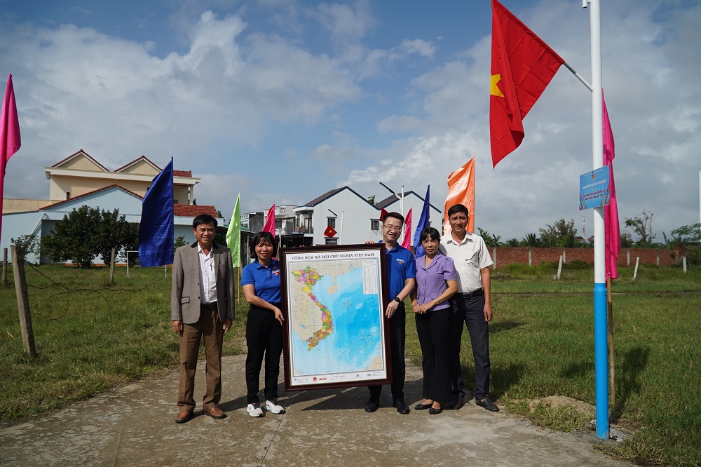 Đồng thời, đoàn trao tặng 300 bản đồ Việt Nam hưởng ứng Cuộc vận động Tự hào một dải non sông và bàn giao công trình thanh niên Thắp sáng đường quê bằng năng lượng mặt trời tại xã Cẩm Thanh, thành phố Hội An.