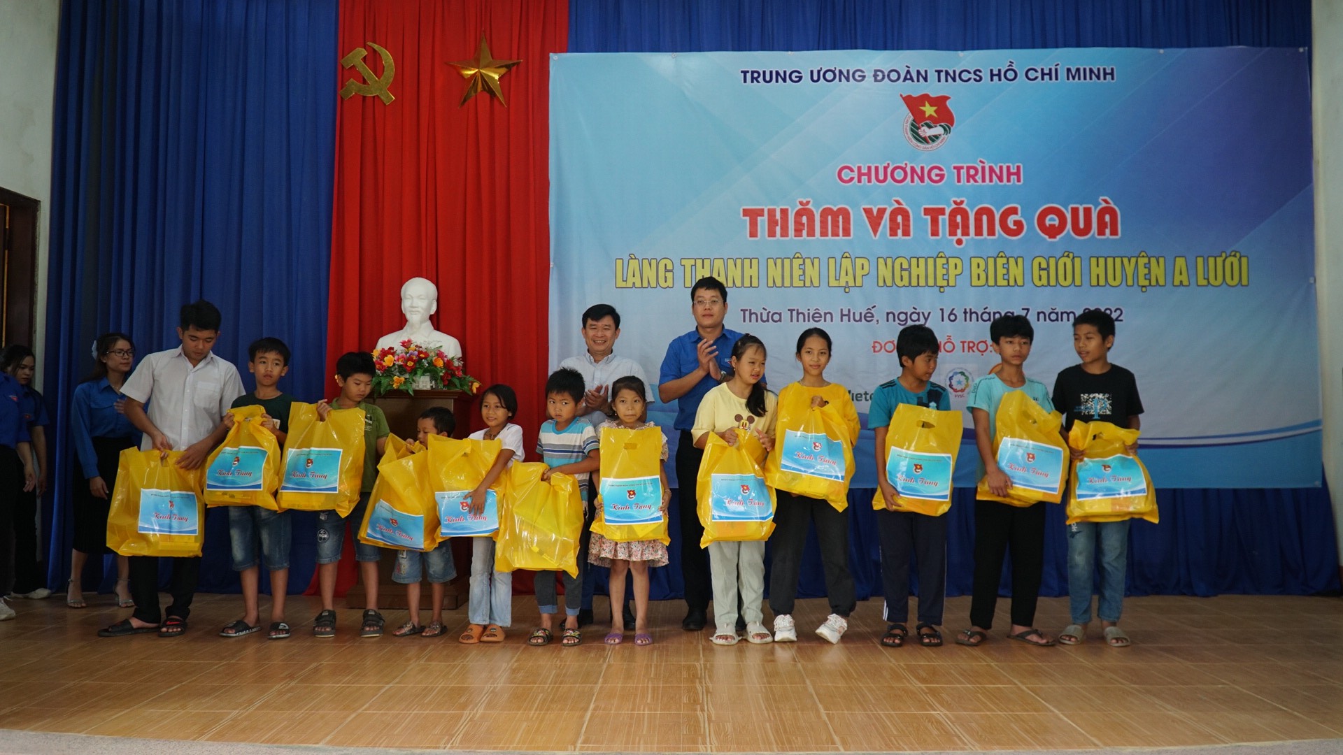 Tại Làng Thanh niên lập nghiệp A Lưới (xã Hương Phong), Đoàn Công tác Trung ương Đoàn đã trao quà cho các em nhỏ và tặng công trình sân chơi thiếu nhi (trị giá 80 triệu đồng). Ngoài ra, 2.000 con gà giống và 1 tấn thức ăn chăn nuôi với tổng trị giá 30 triệu đồng cũng được trao hỗ trợ các thanh niên có hoàn cảnh khó khăn.