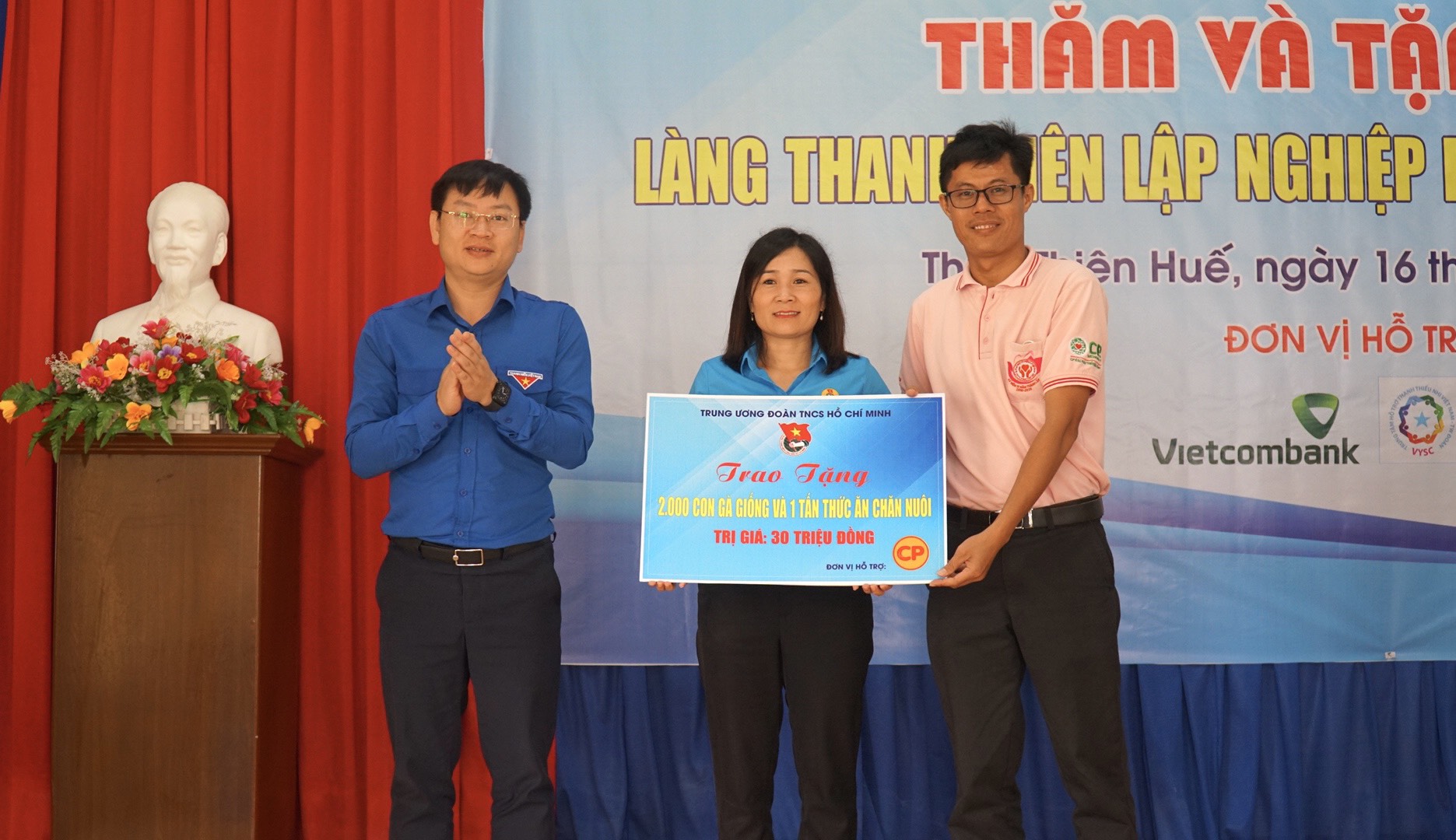 Trao hỗ trợ các thanh niên có hoàn cảnh khó khăn 2.000 con gà giống và 1 tấn thức ăn chăn nuôi với tổng trị giá 30 triệu đồng