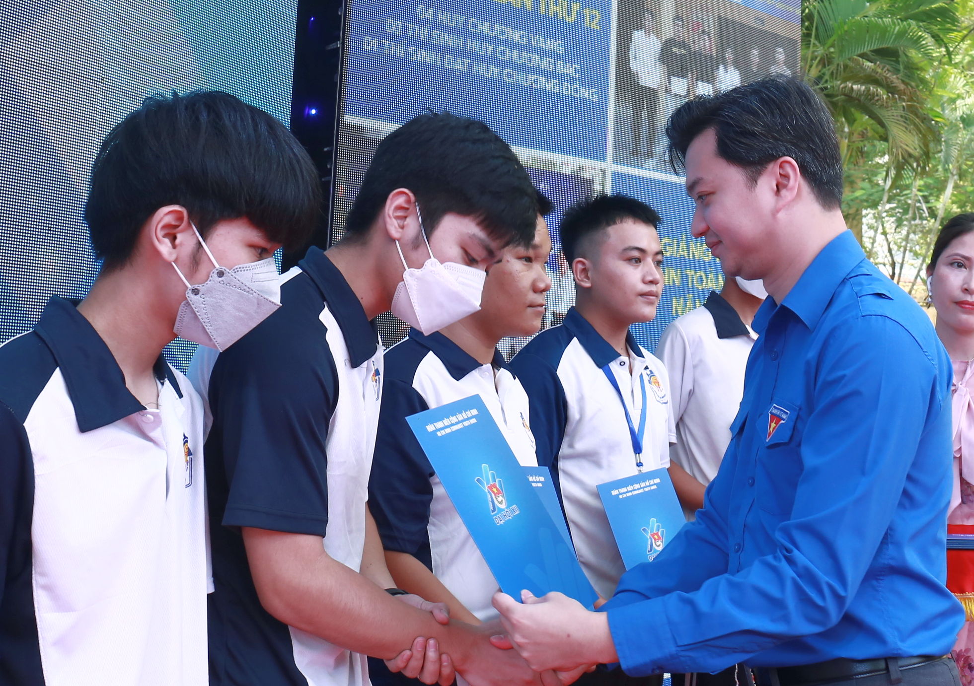 Bí thư TƯ Đoàn, Chủ tịch Hội sinh viên Việt Nam, Nguyễn Minh Triết trao 20 suất học bổng, (mỗi xuất 2 triệu đồng) cho học sinh, sinh viên nghèo vượt khó nhà trường.
