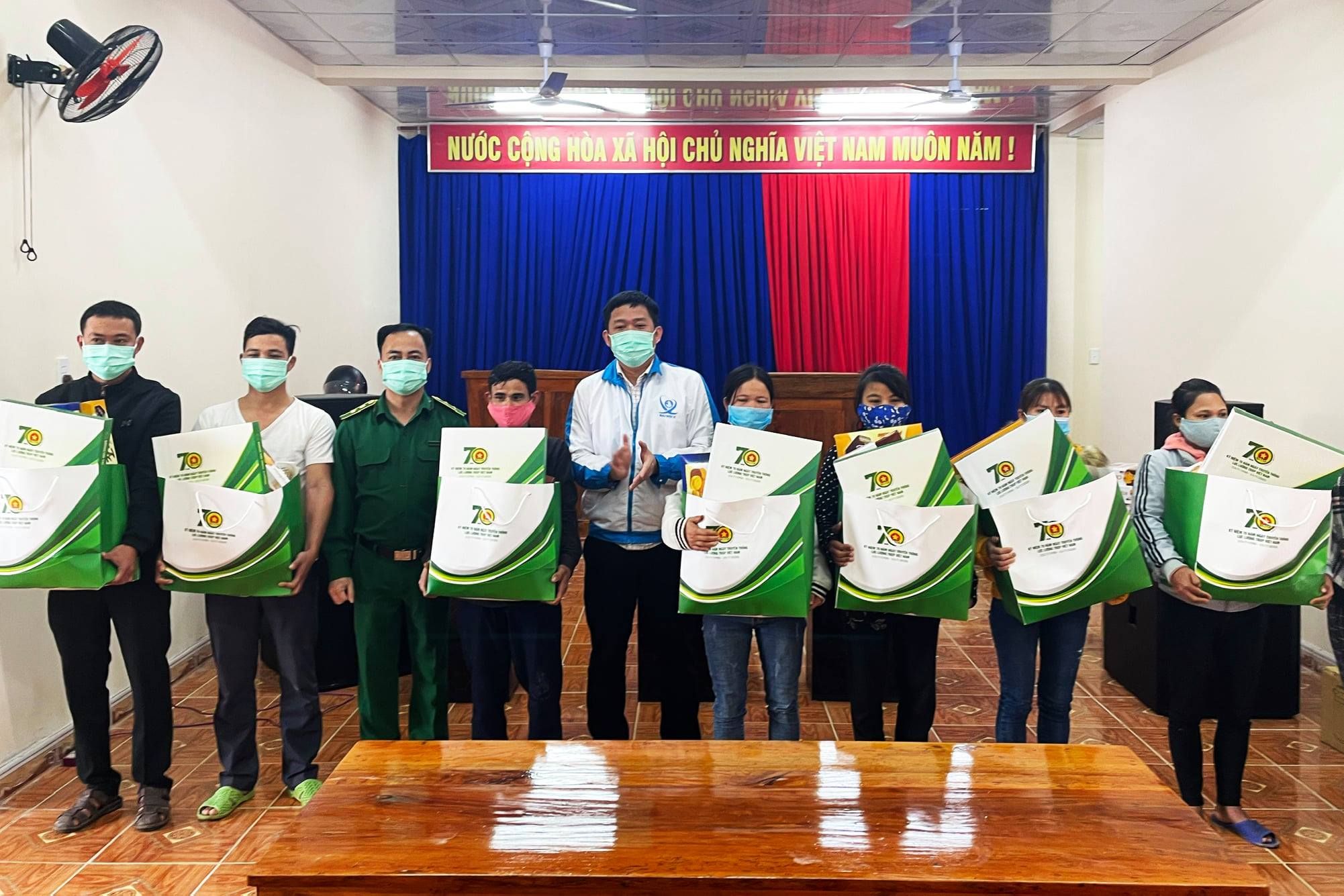 Trao tặng quà cho các hộ dân trong làng thanh niên lập nghiệp