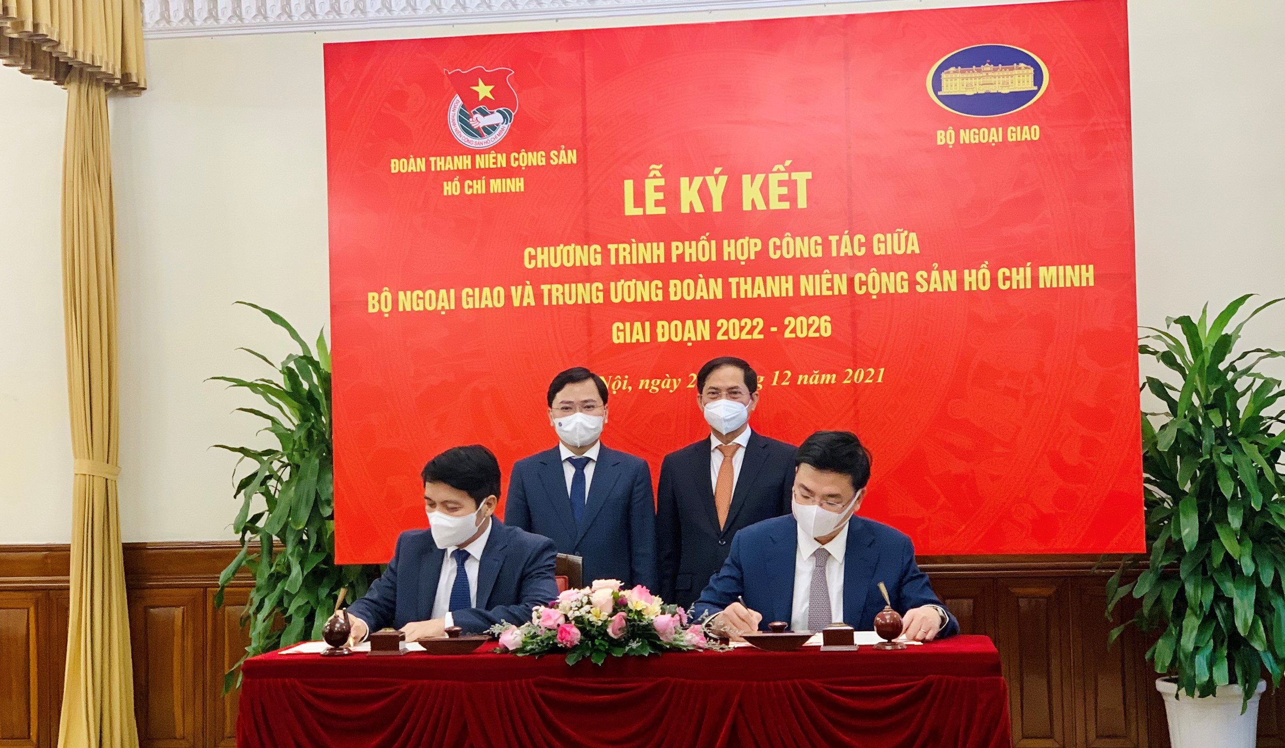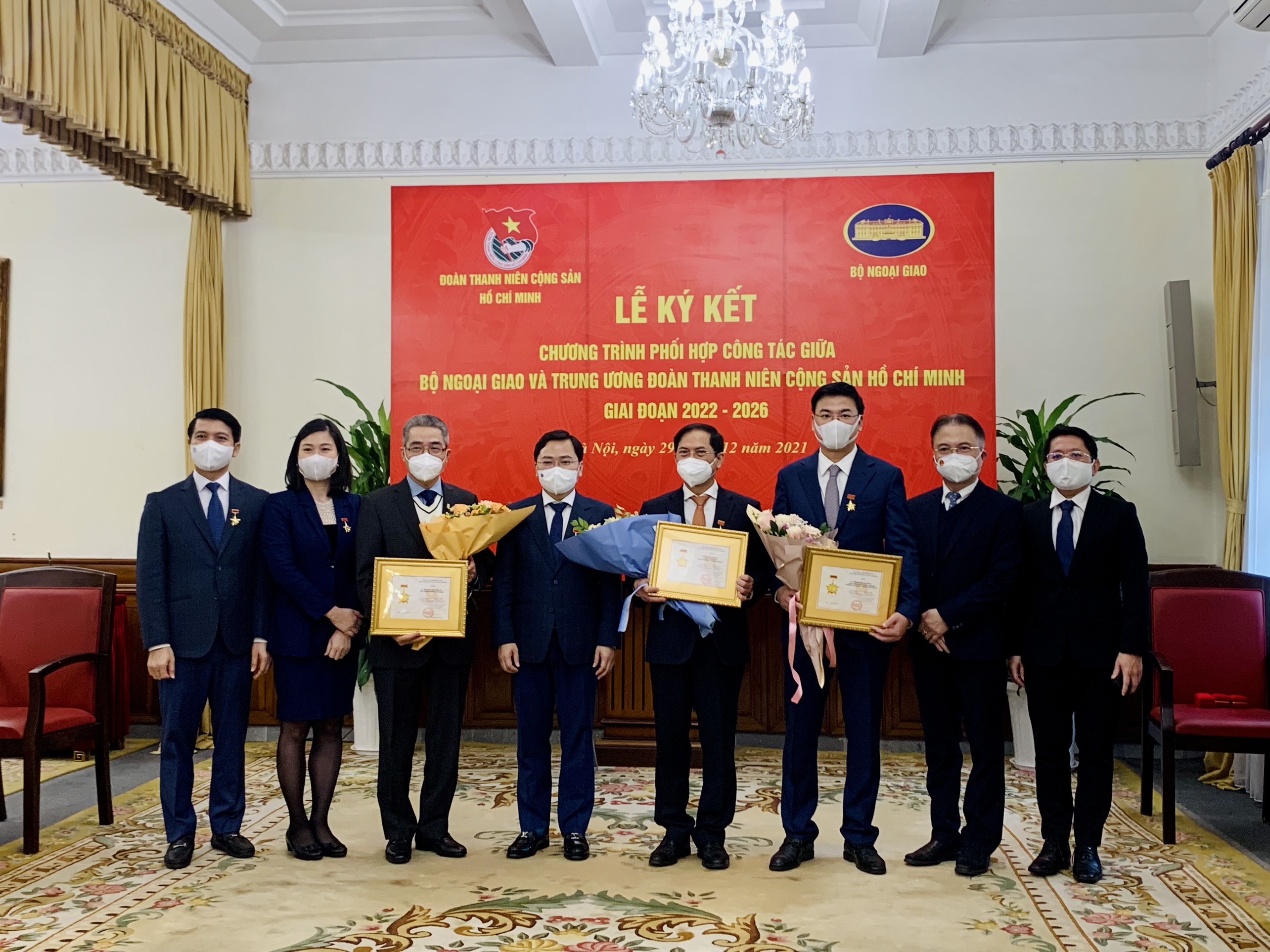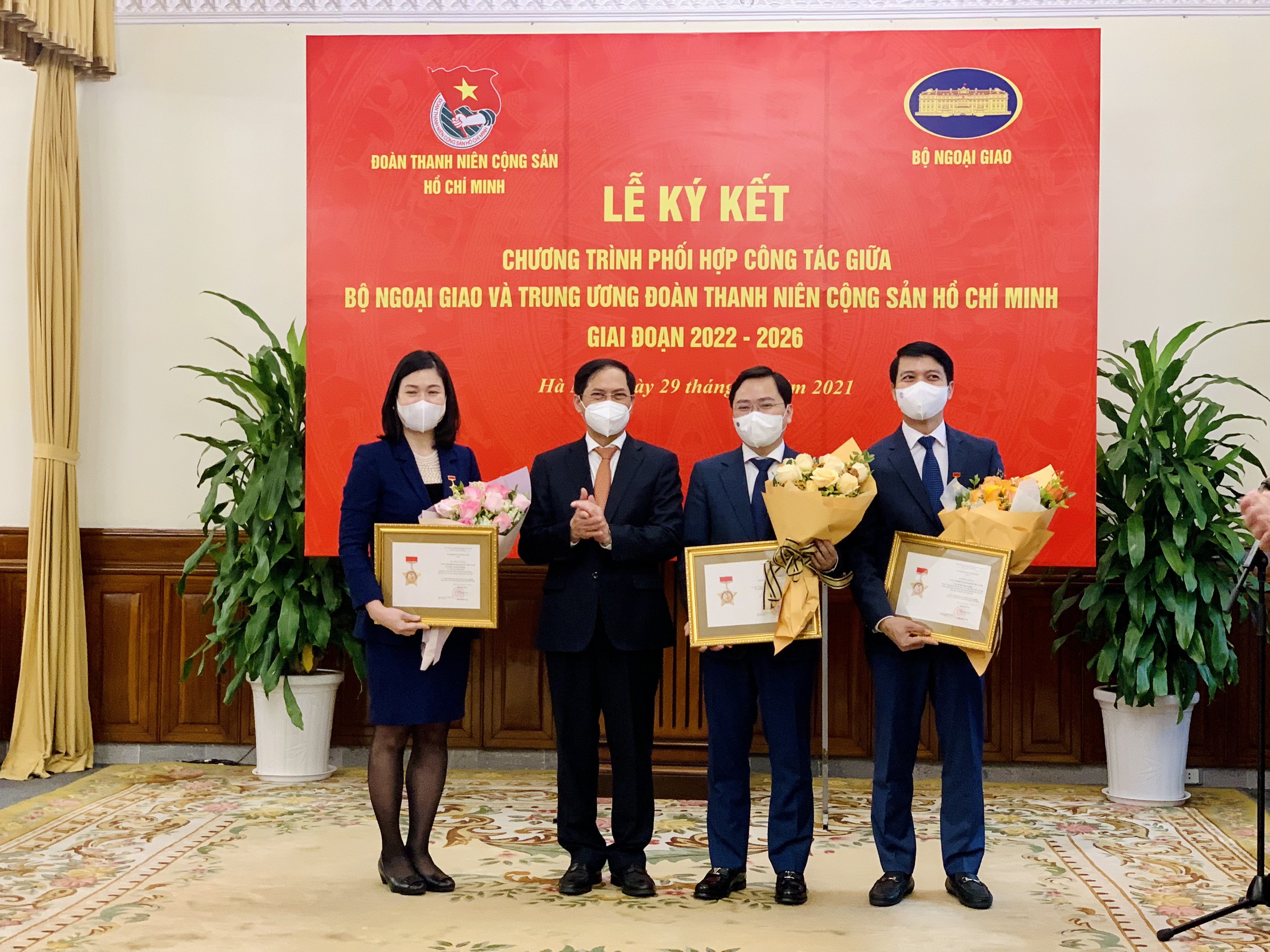 Bộ trưởng Bộ Ngoại giao Bùi Thanh Sơn trao tặng Kỷ niệm chương “Vì sự nghiệp Ngoại giao Việt Nam” cho Bí thư thứ nhất T.Ư Đoàn Nguyễn Anh Tuấn; Bí thư T.Ư Đoàn Nguyễn Ngọc Lương; Quyền Trưởng ban Quốc tế Trung ương Đoàn Trịnh Thị Mai Phương