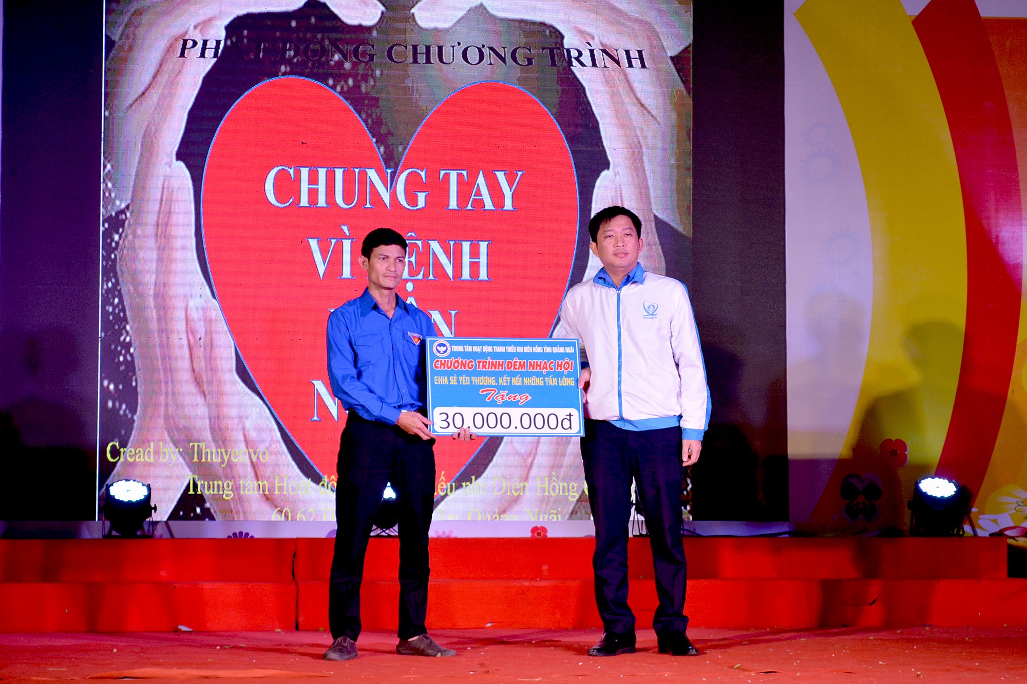Tối cùng ngày, được sự ủng hộ đóng góp của các nhà hảo tâm, Trung tâm hoạt động Thanh thiếu nhi Diên Hồng đã trao số tiền 30 triệu đồng ủng hộ em Đinh Tiến Đạt chữa bệnh.