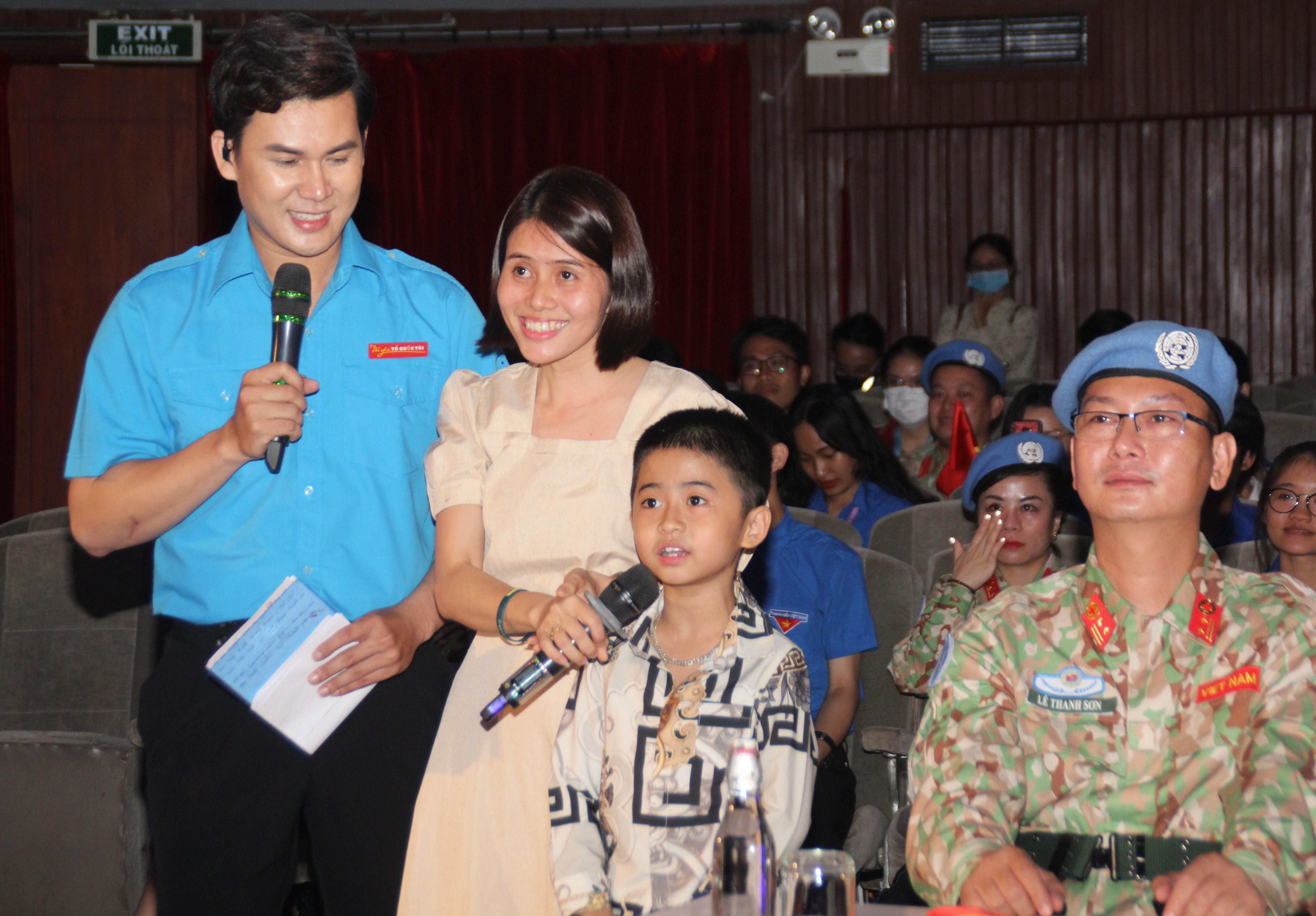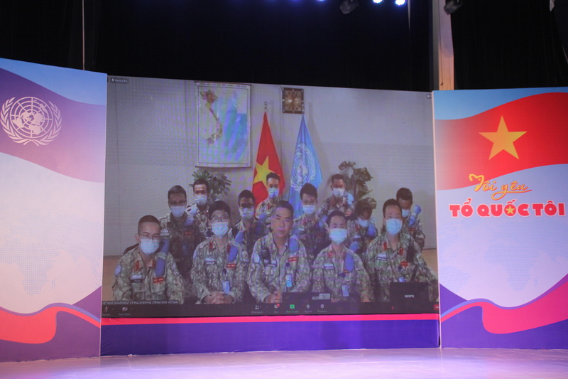 Đặc biệt, buổi giao lưu chứng kiến giây phút xúc động khi diễn ra cuộc hội ngộ giữa vợ con và một chiến sỹ đang làm nhiệm vụ tại Nam Sudan thông qua sóng trực tuyến