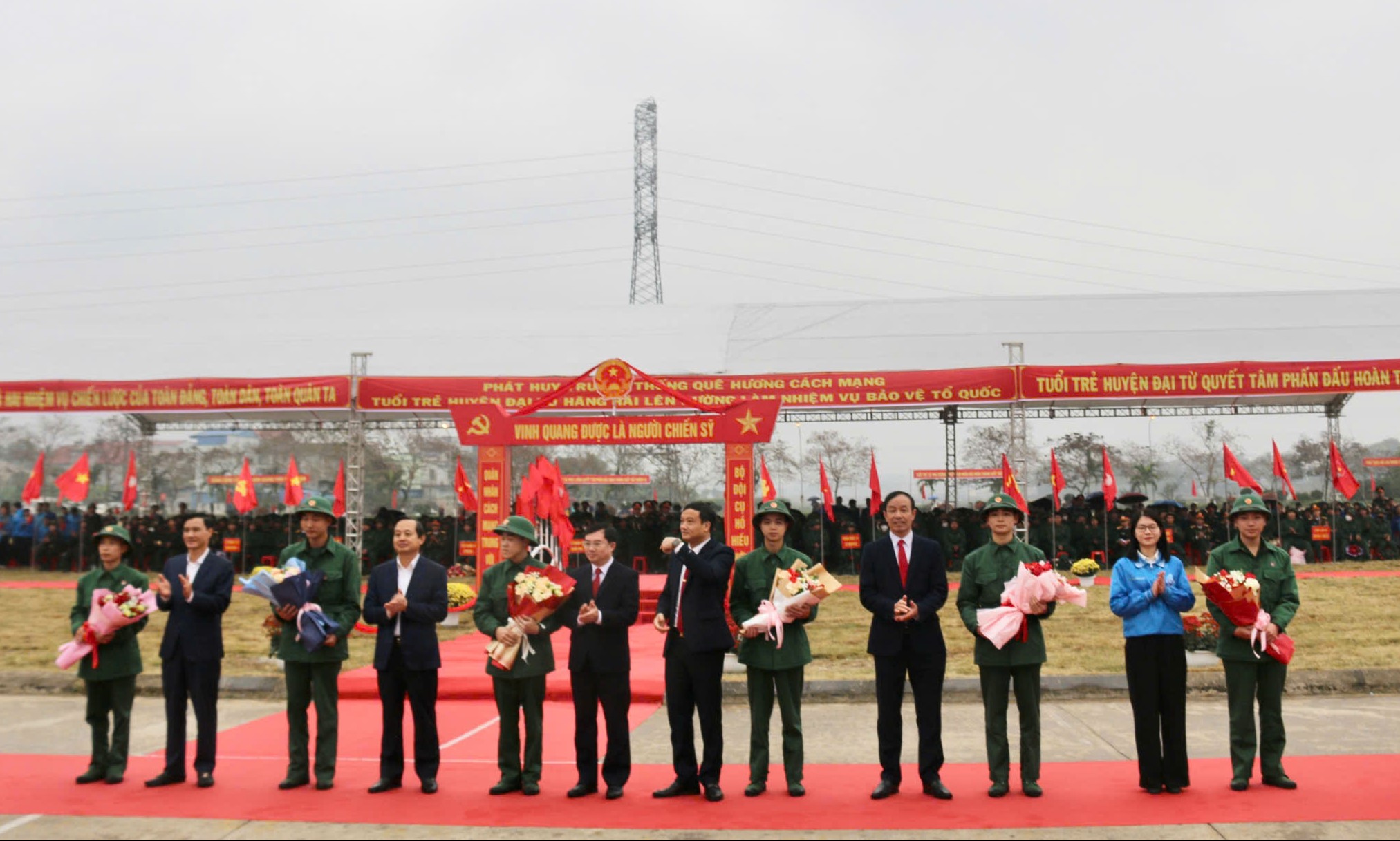 Các đại biểu tặng hoa động viên các tân binh