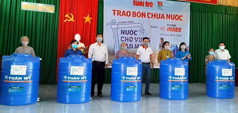 Trao tặng 200 bồn chứa nước cho các hộ dân trong vùng bị xâm nhập mặn tại xã Quới Thiện và Thanh Bình, huyện Vũng Liêm.
