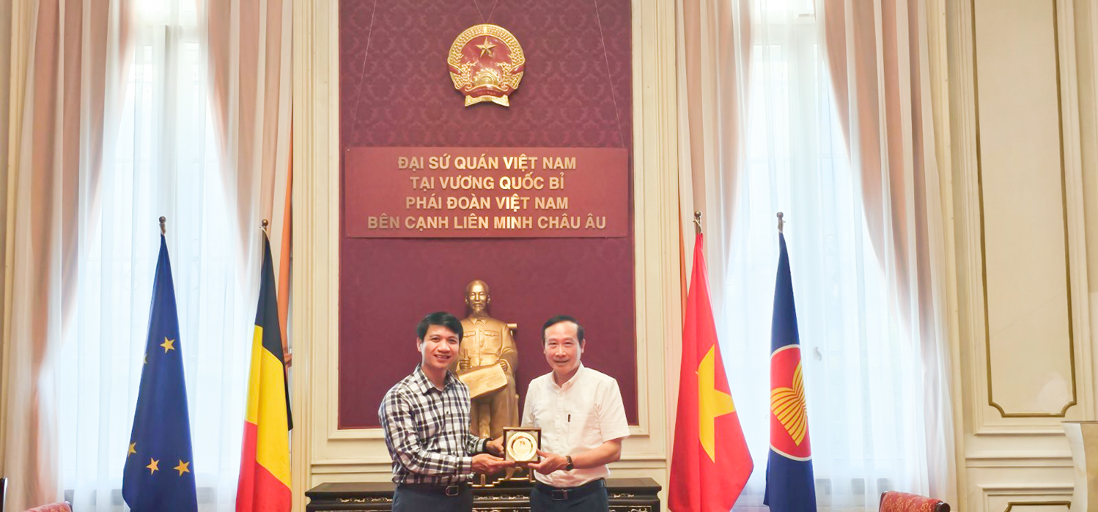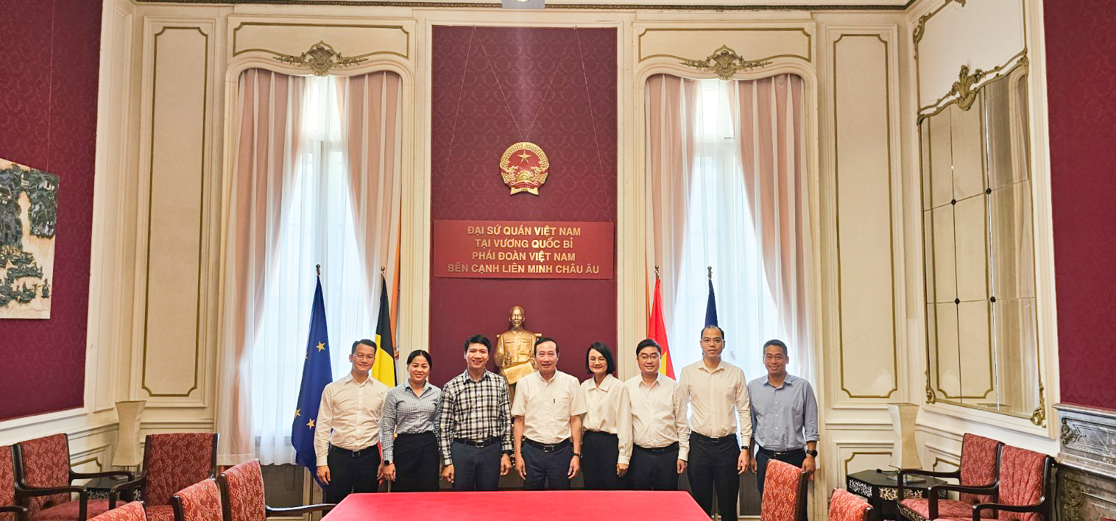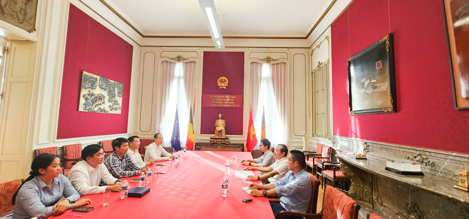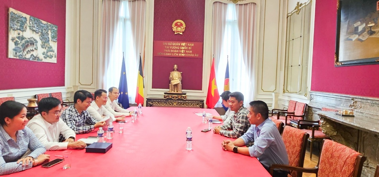 Đồng chí Nguyễn Ngọc Lương, Bí thư Thường trực BCH Trung ương Đoàn, Chủ tịch Hội Liên hiệp Thanh niên Việt Nam làm việc với Đại sứ quán Việt Nam tại Vương quốc Bỉ