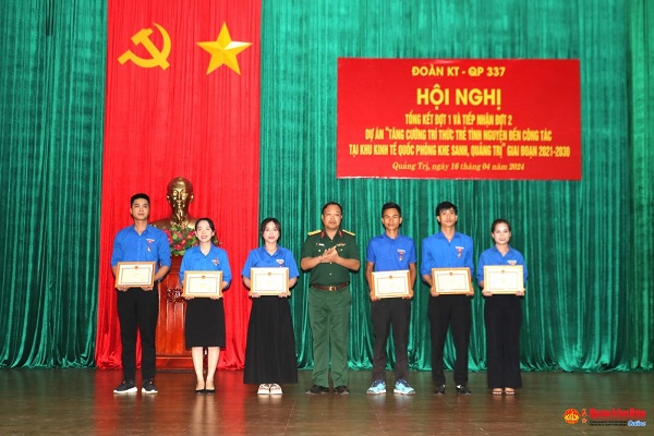 Tại Hội nghị Đoàn Kinh tế - Quốc phòng 337 đã công bố và trao Quyết định của Ban Quản lý dự án 174 Quân khu 4 phê duyệt danh sách tuyển chọn 24 đội viên trí thức trẻ tình nguyện đợt 2 (2024-2026) về công tác tại Khu Kinh tế - Quốc phòng Khe Sanh.