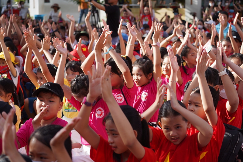 Nhân dịp này, Hội đồng Đội Trung ương, Công ty Cổ phần sữa Quốc tế IDP trao tặng 10 suất quà cho các em học sinh có hoàn cảnh khó khăn vươn lên học tốt của Trường Tiểu học Võ Thị Sáu, mỗi suất trị giá 1 triệu đồng, bao gồm 500.000 đồng tiền mặt và 01 bộ balo, dụng cụ học tập.