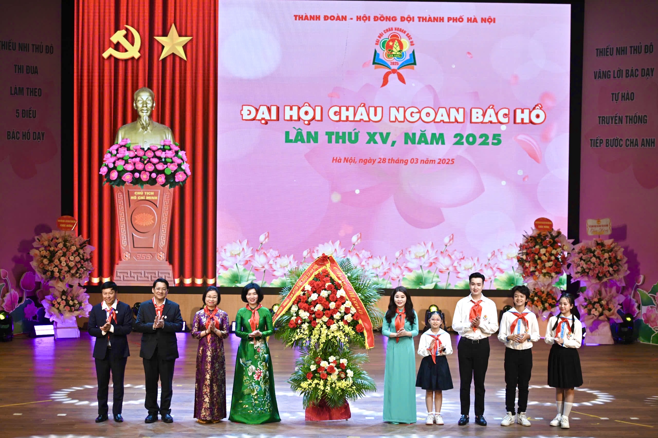 tặng hoa chúc mừng Thành đoàn - Hội đồng Đội thành phố Hà Nội