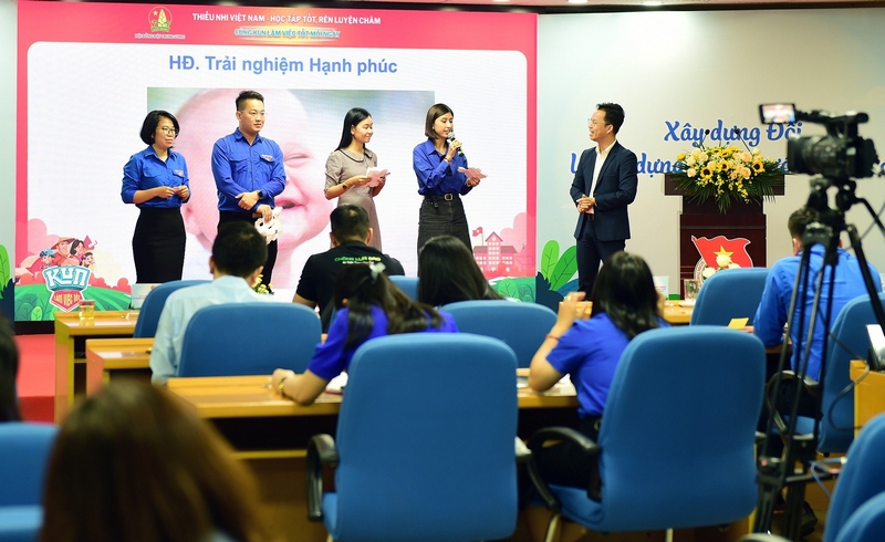 Hội nghị được kết nối trực tuyến tới các điểm cầu Hội đồng Đội các cấp và giáo viên Tổng phụ trách Đội